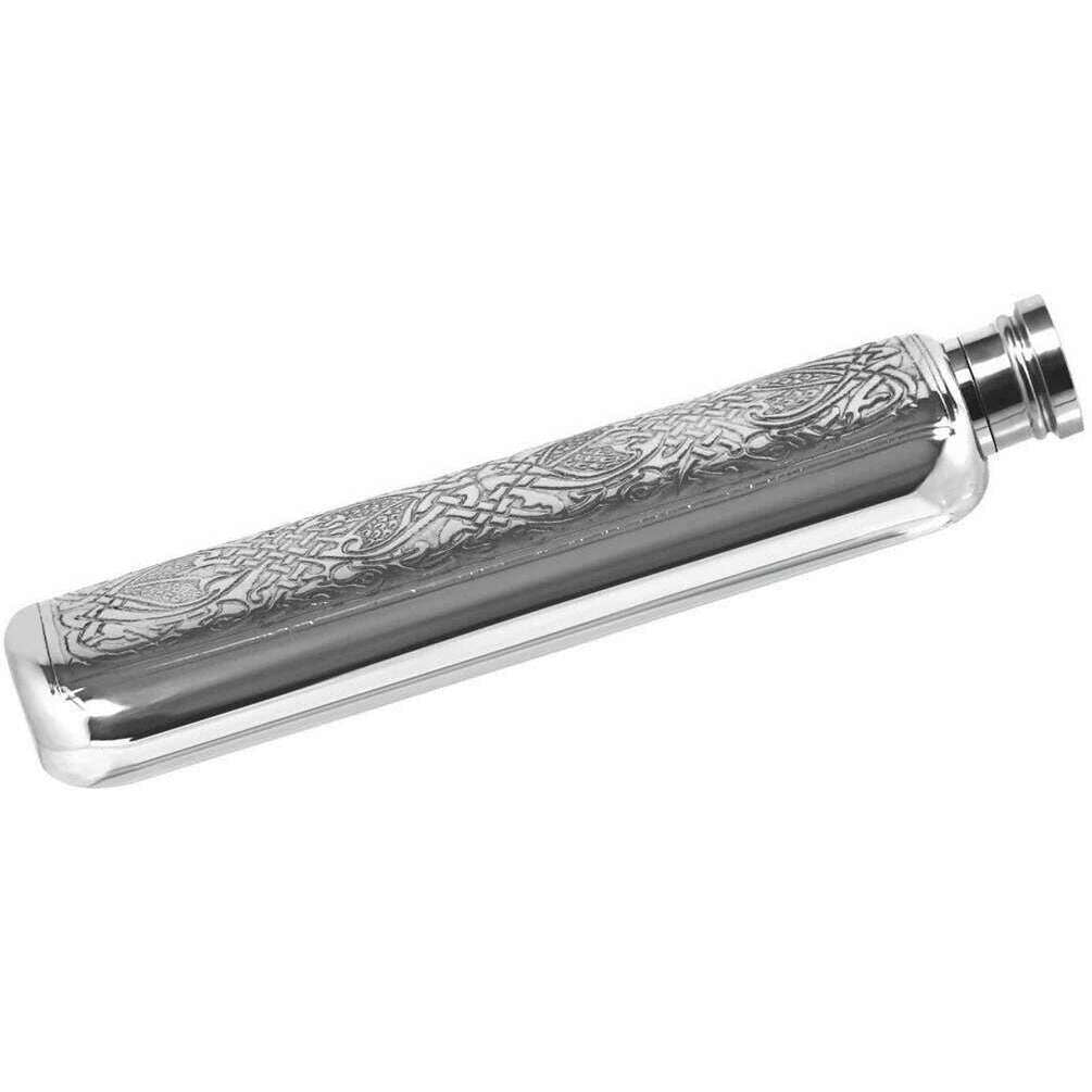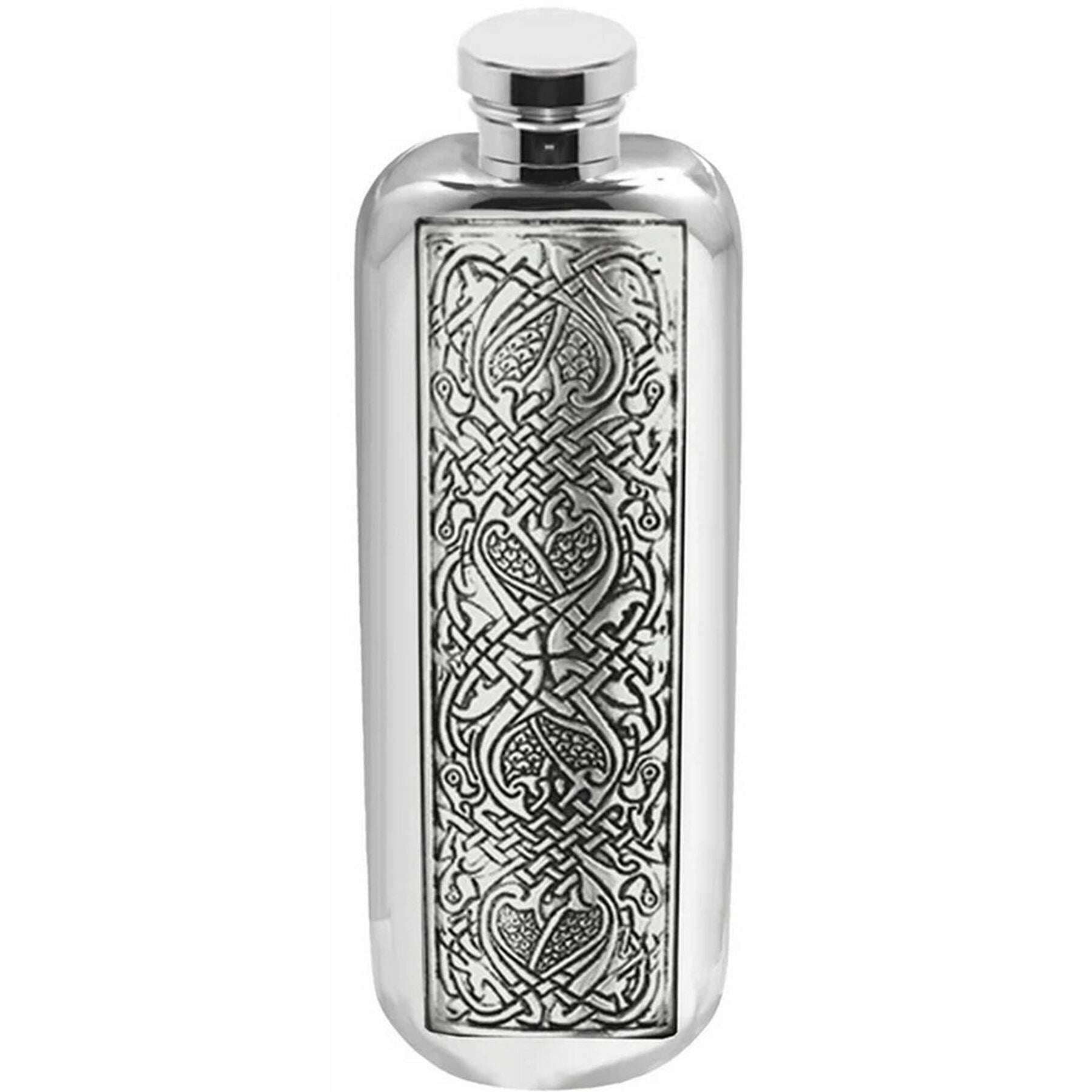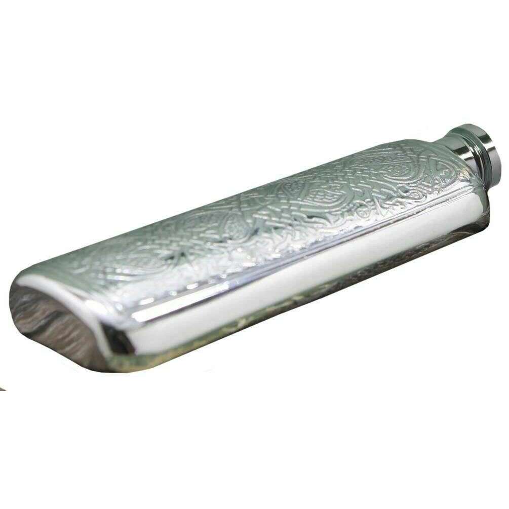 English Pewter Company 3 unz Celtic Top Pocket Flask - Silver