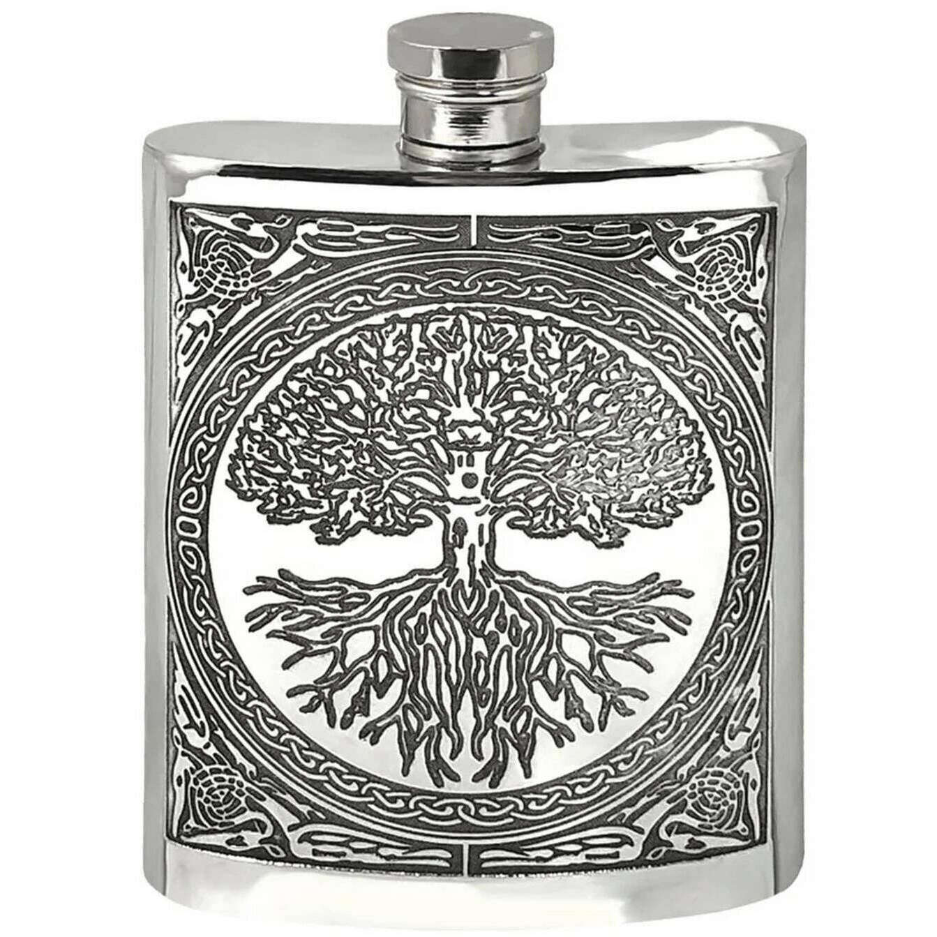 English Pewter Company 6 unz Celtic Tree of Life Flask - Silver