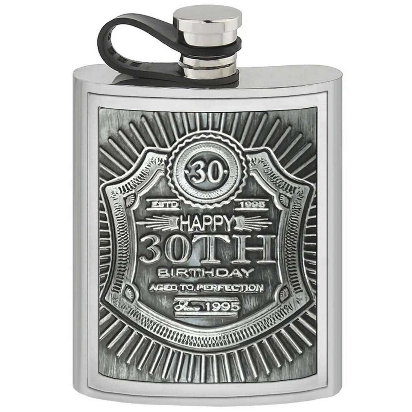 English Pewter Company 6 unz Expossed 30th Pewter Hip Flask - Silver
