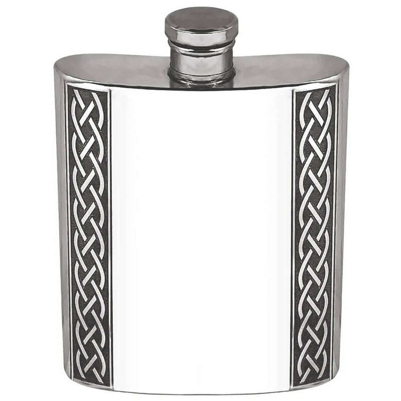 English Pewter Company 6 unz Expossed Celtic Band Flask - Silver