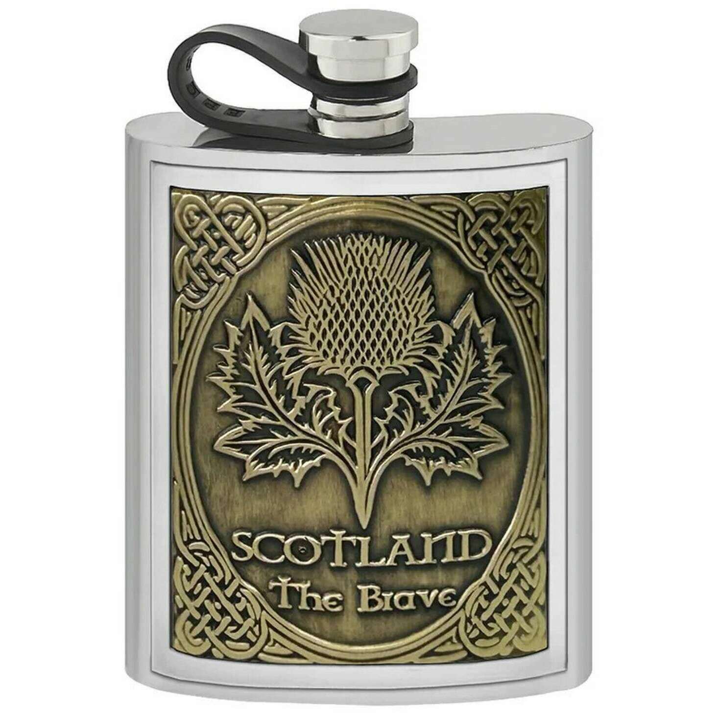 English Pewter Company 6 unz Expossed Thistle Pewter Flask - Srebrne/mosiężne złoto