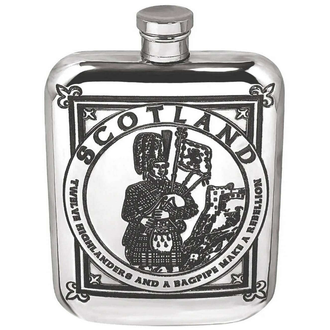 English Pewter Company 6 unz Highland Piper Flask - Silver