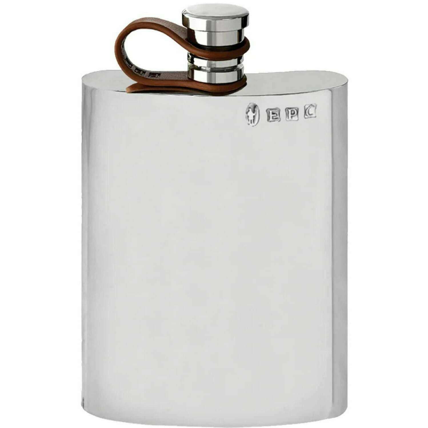 English Pewter Company 6 unz Plain Leather Flexi Cap Hip Flask - Silver
