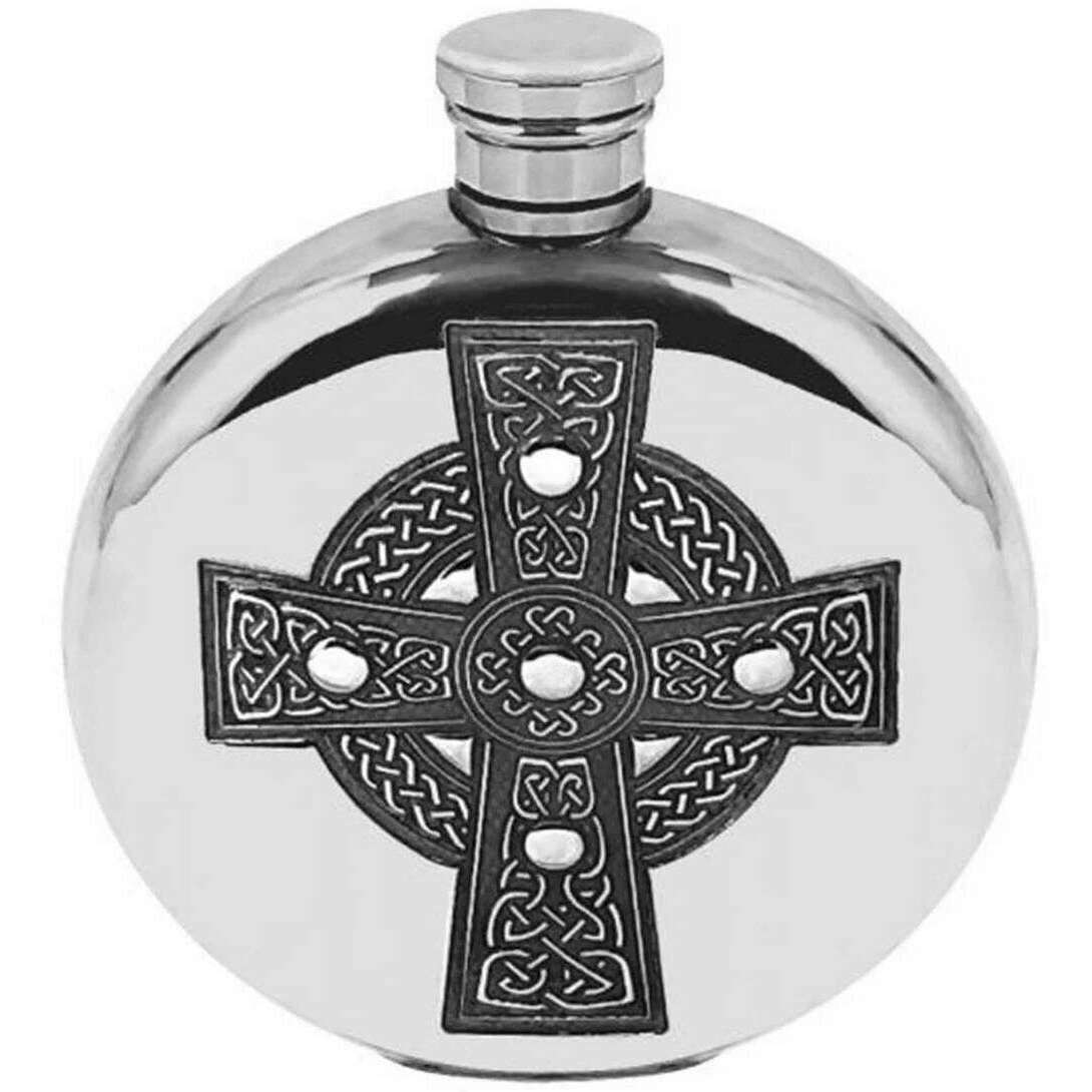 English Pewter Company 6 uncji okrągłe Celtic Cross Flask - Silver