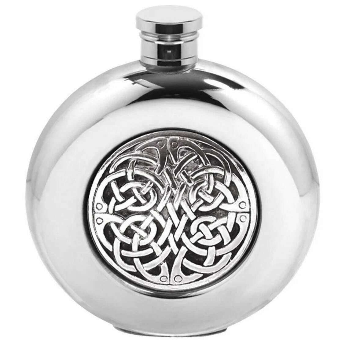 Angielski Pewter Company 6 uncji okrągły Celtic Disk Flask - Silver