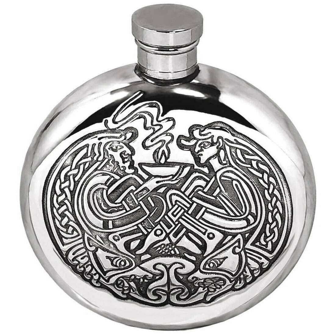 English Pewter Company 6 uncji okrągła kolba celtycka - srebrny