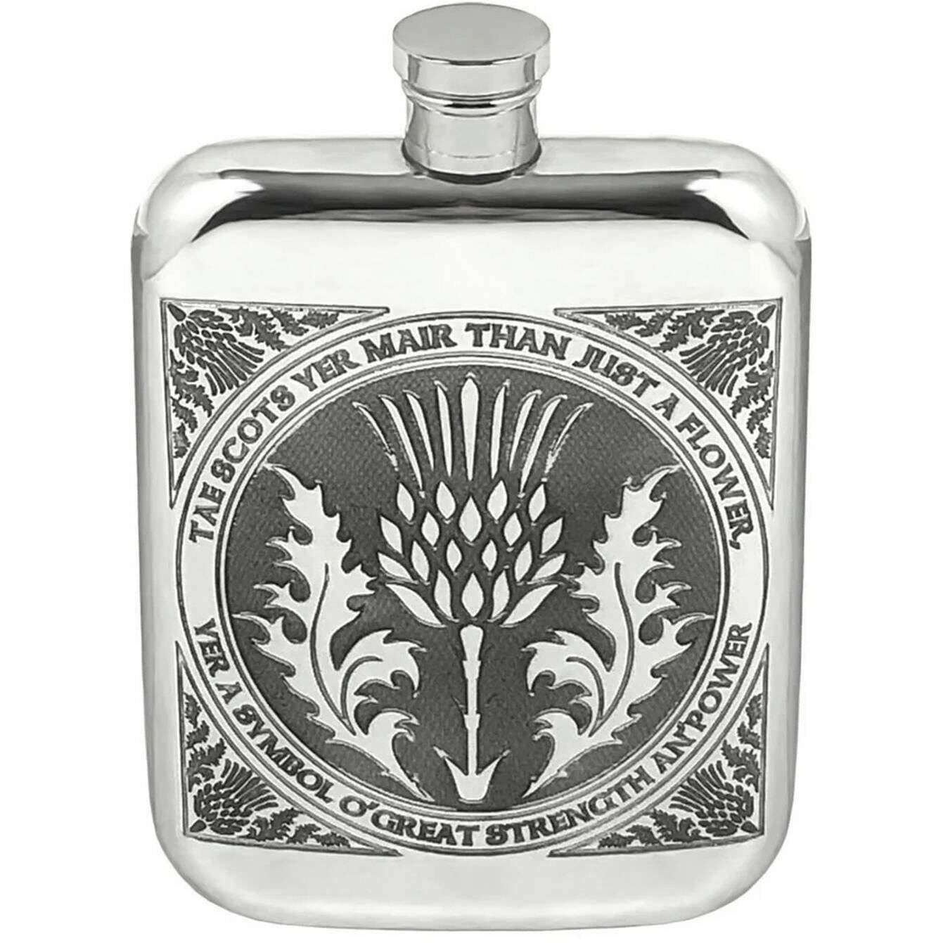 English Pewter Company 6oz TAE A Thistle Flask - Silver