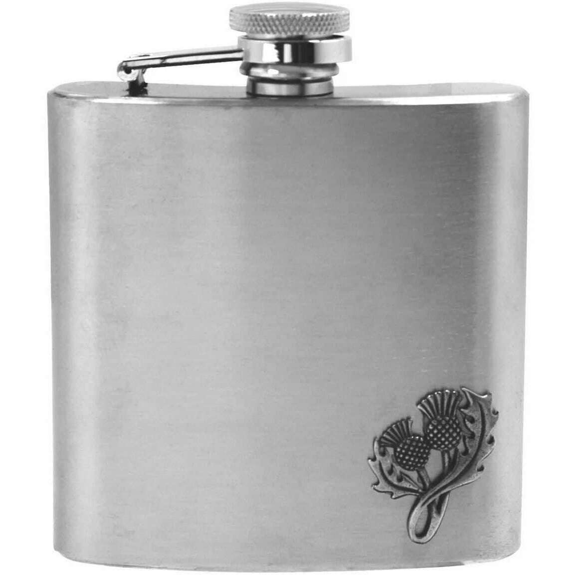 English Pewter Company 6 unz Thistle Badge Flask - Silver