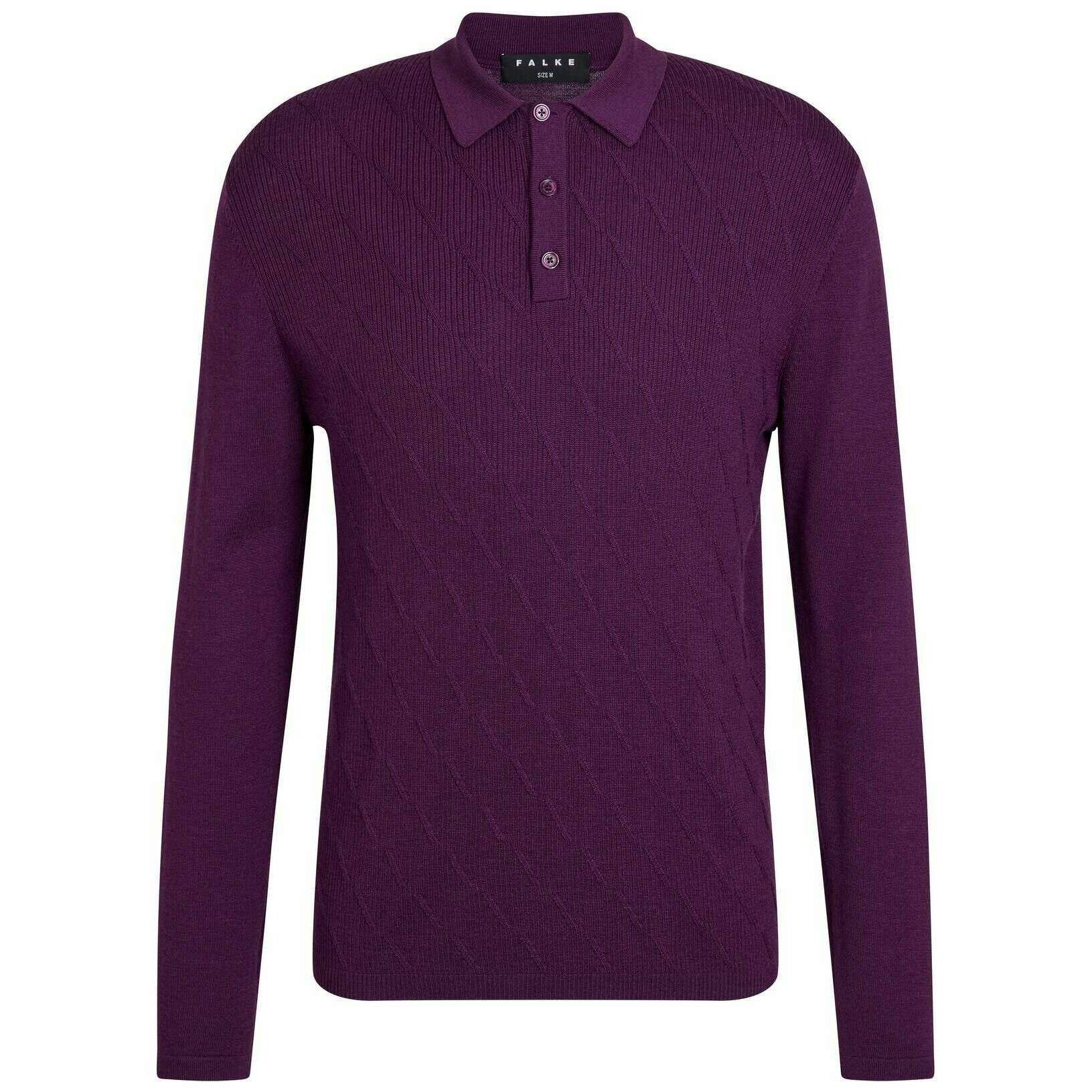 Sweter polo Falke Cashmere Touch z długim rękawem - bakłażanowy fiolet