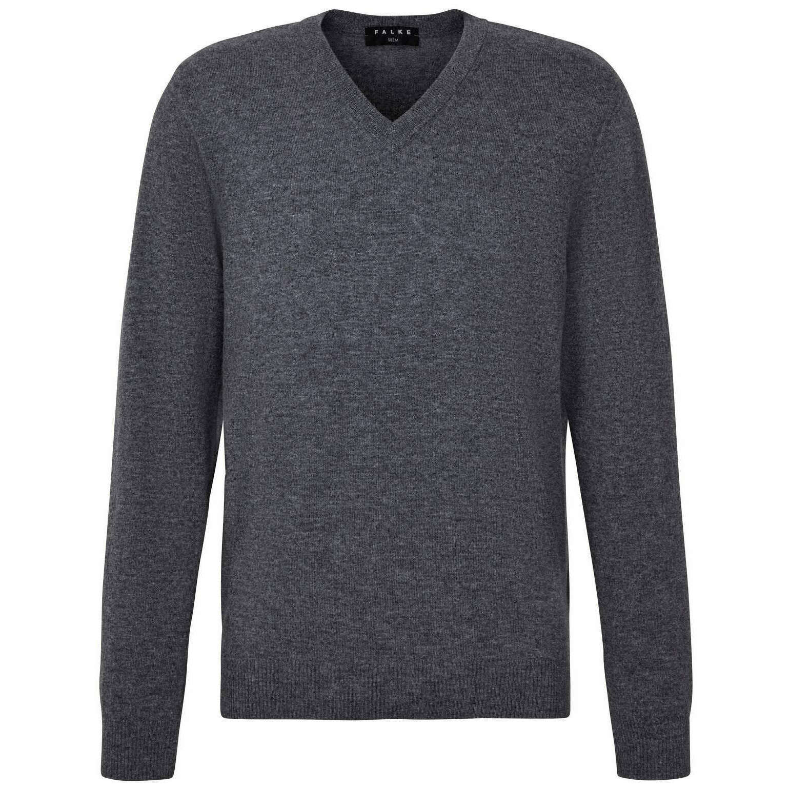 Sweter Falke z owczej wełny z dekoltem w kształcie litery V - wrzosowy ciemnoszary