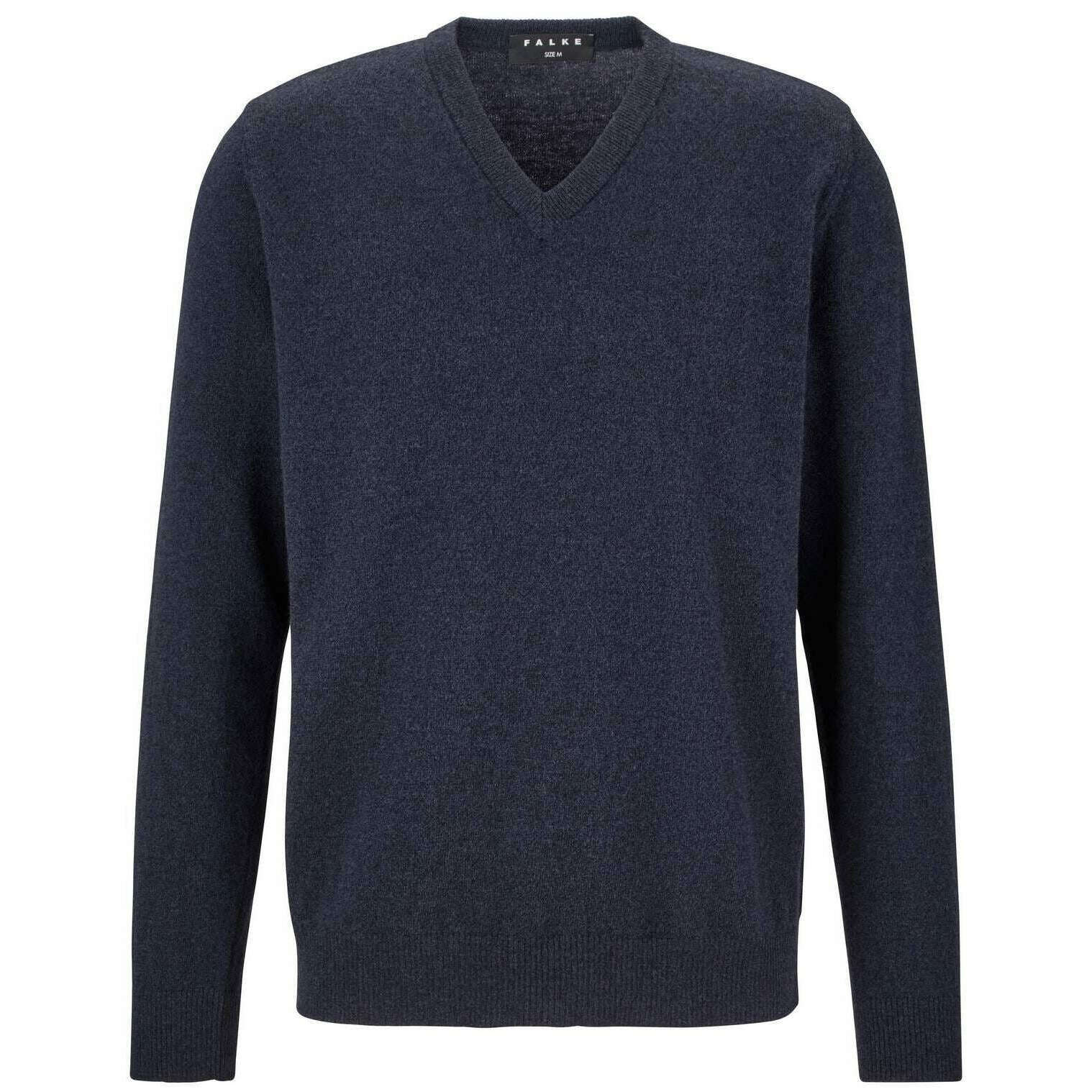 Sweter Falke z owczej wełny z dekoltem w kształcie litery V - gwiezdny błękit