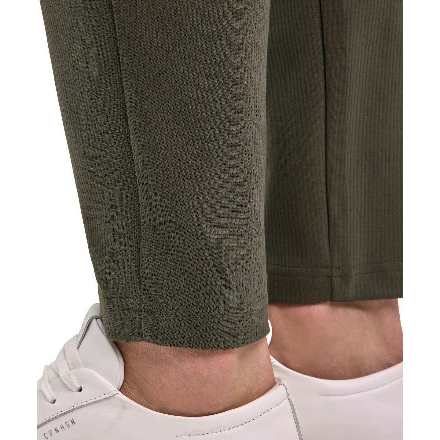 • Oddychająca , Klimatyzacja , Drobno prążkowana struktura , Elastyczny pas , Regulowany sznurek , Zwężane nogawki , Ukośne kieszenie boczne