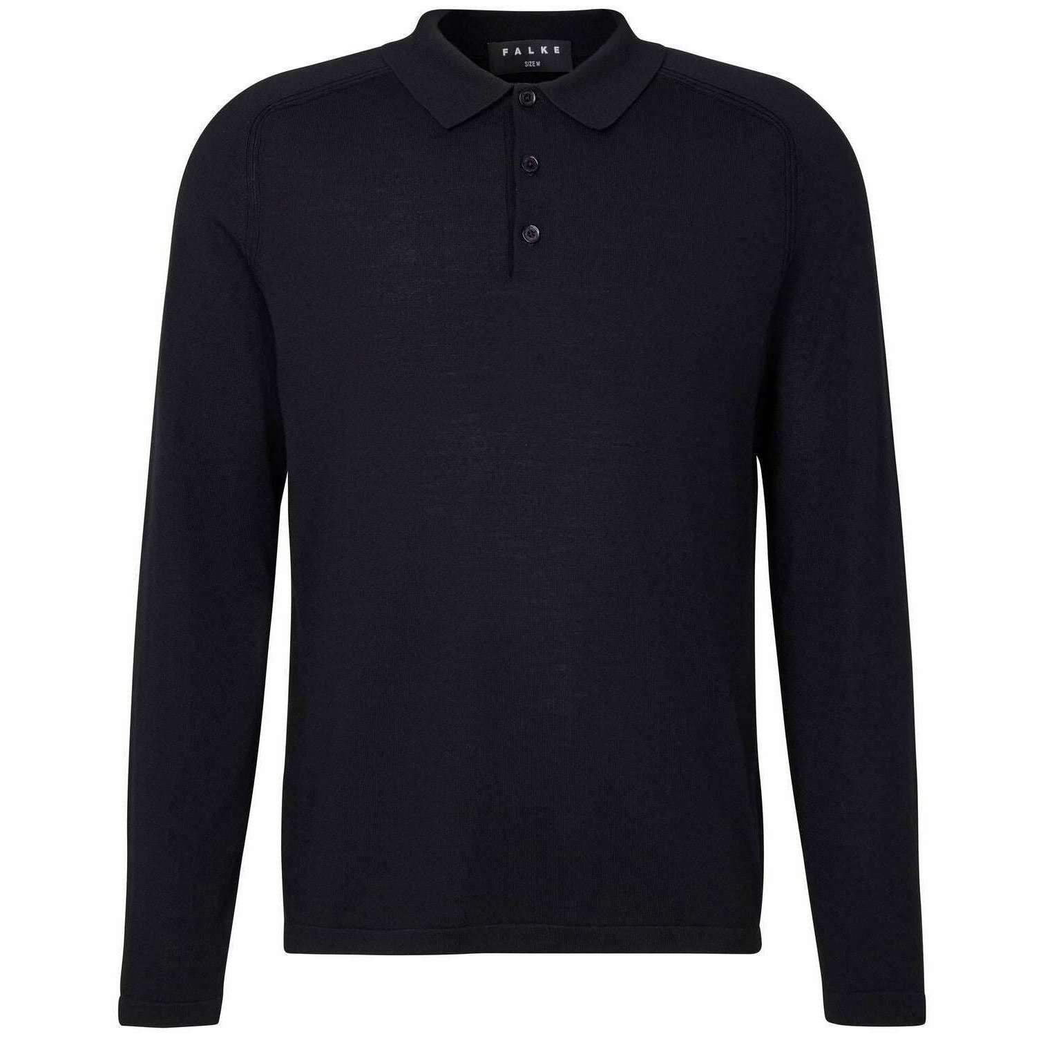 Koszulka polo Falke Merino Ultra-Fine z długim rękawem - czarna