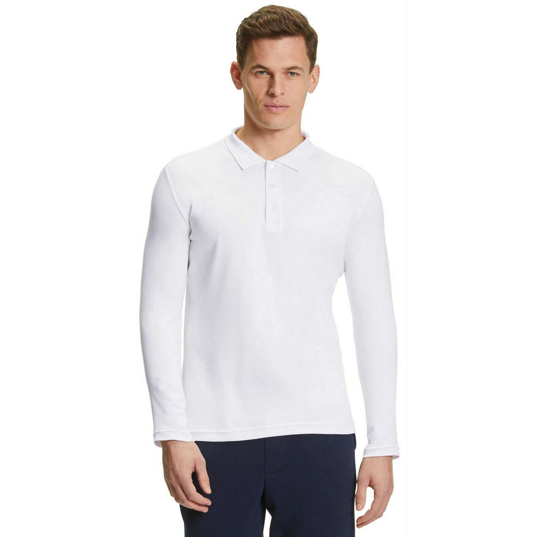 Koszulka polo z długim rękawem Falke Pima Interlock - biała