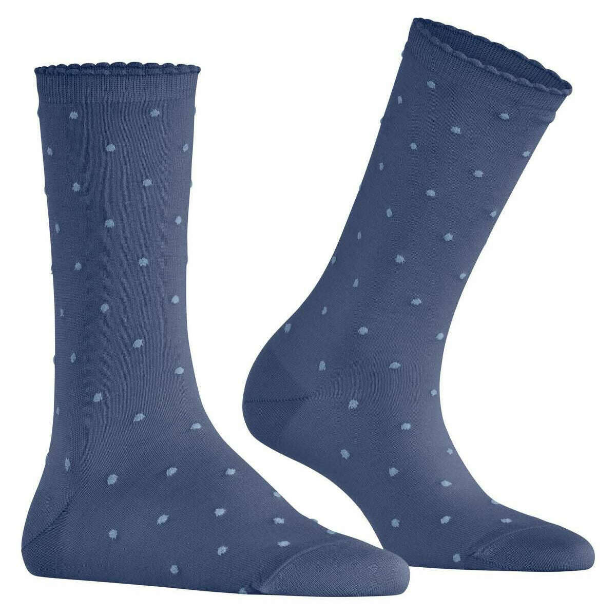 Te damskie skarpetki w kropki marki Falke są wykonane z 85% bawełny, 10% poliamidu, 4% sztucznego jedwabiu i 1% elastanu i są prezentowane w kolorze niebieskim. Również skarpetki Horizon Blue mają wzór w kropki. Aby zachować skarpetki w dobrym stanie, zaleca się pranie w temperaturze 30 stopni. Wszystkie skarpetki są wyposażone w fałszywe metki. Skarpetki Falke Spike Dot – Horizon Blue łączą kobiecy wzór w kropki z przyjazną dla skóry wygodą FALKE WE CARE COTTON. Ich delikatne, kontrastujące kropki tworzą ponadczasowy i elegancki wygląd, dzięki czemu są uniwersalnym dodatkiem, który uzupełnia zarówno codzienne, jak i eleganckie stylizacje. Lekko marszczony mankiet podkreśla ich kobiecy wygląd, a gładkie, dzianinowe tło zapewnia wyrafinowane wykończenie. Wykonane z zrównoważonej, merceryzowanej bawełny organicznej, odzwierciedlają zaangażowanie FALKE w oszczędzanie zasobów, odpowiedzialność społeczną i identyfikowalność materiałów. Wzmocnione strefy naprężenia zapewniają długotrwałą trwałość, a charakterystyczny FALKE Perfect Fit gwarantuje wyjątkowy komfort przez cały dzień. Łącząc zrównoważony komfort bawełny i modny design, skarpetki te stanowią stylowy i odpowiedzialny wybór do codziennego noszenia.