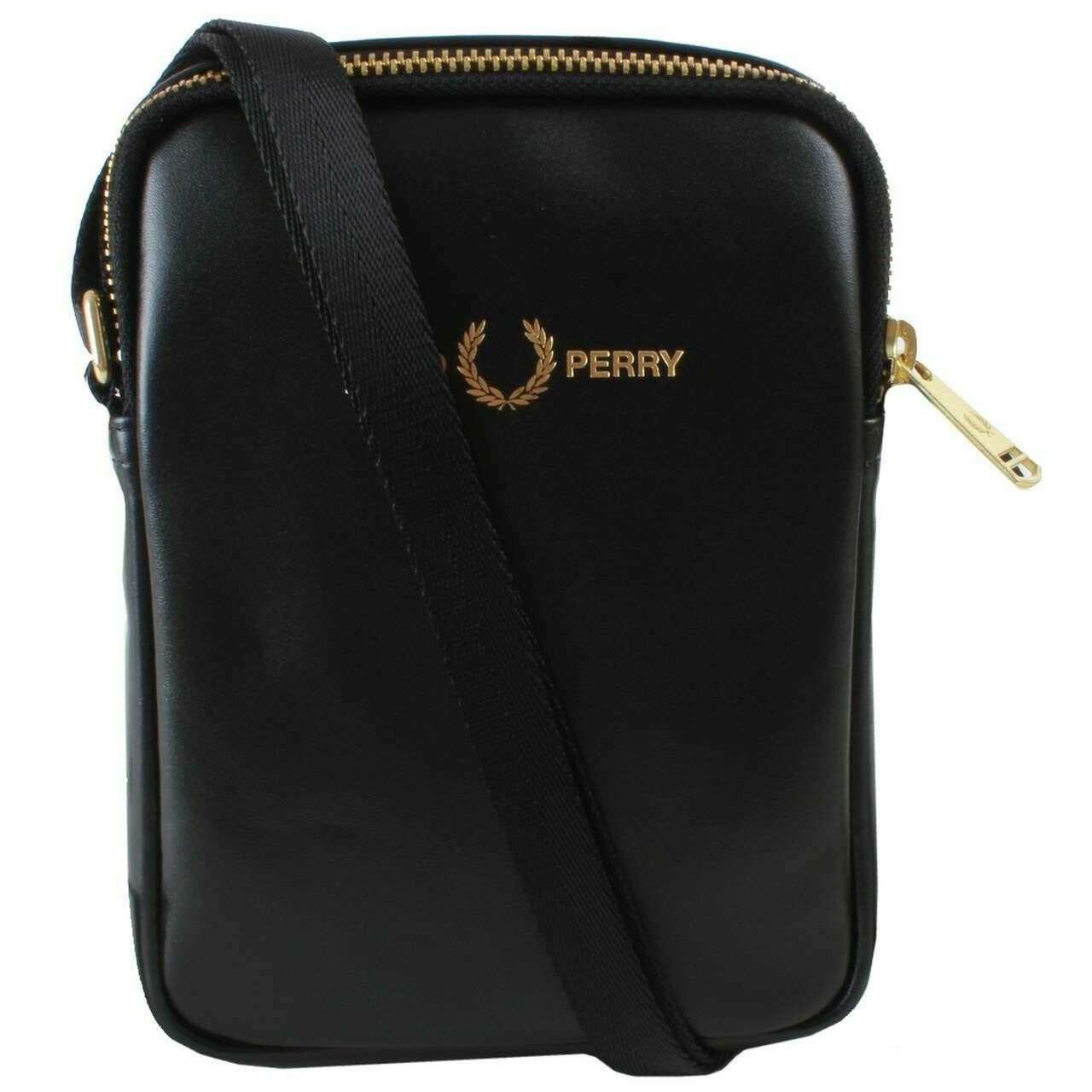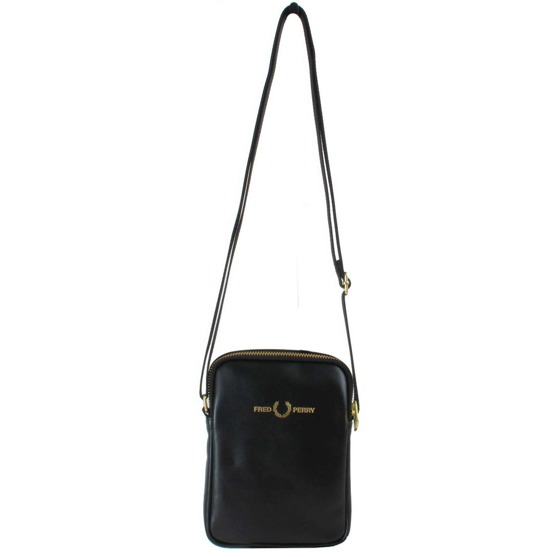 Mała boczna torba Fred Perry z gładkiej skóry - czarna