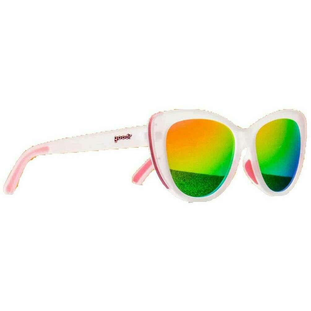Te dobrze wykonane tęczowe okulary przeciwsłoneczne marki Goodr są dostępne w przezroczystym, półprzezroczystym kolorze i są wykonane z tworzywa sztucznego. Wymiary: 14,5 cm (szerokość soczewek) x 15,1 cm (długość zauszników). Wszystkie okulary przeciwsłoneczne są dostarczane w komplecie z dobrym opakowaniem. Okulary przeciwsłoneczne Goodr Rainbow Runway Ready – przezroczyste, mają piękny, klasyczny wzór kocich oczu, który zapewnia oszałamiający styl podczas letnich przygód. Soczewki posiadają ochronę polaryzacyjną i filtr UV 400. Dzięki konstrukcji zapobiegającej poślizgowi i odbijaniu gwarantujemy, że będą trzymać się przy Tobie niezależnie od wykonywanej aktywności.