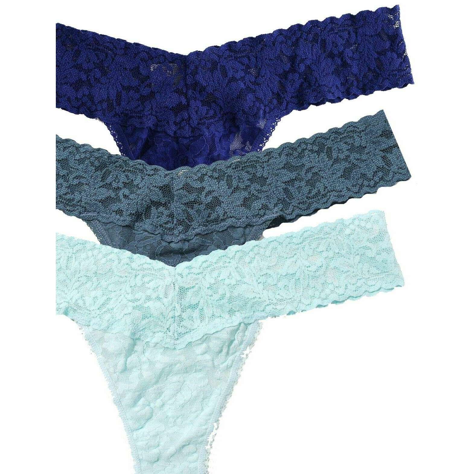 3 pary stringów Hanky Panky Signaure Lace Low Rise - Odyssey Blue/Storm Cloud/Celeste