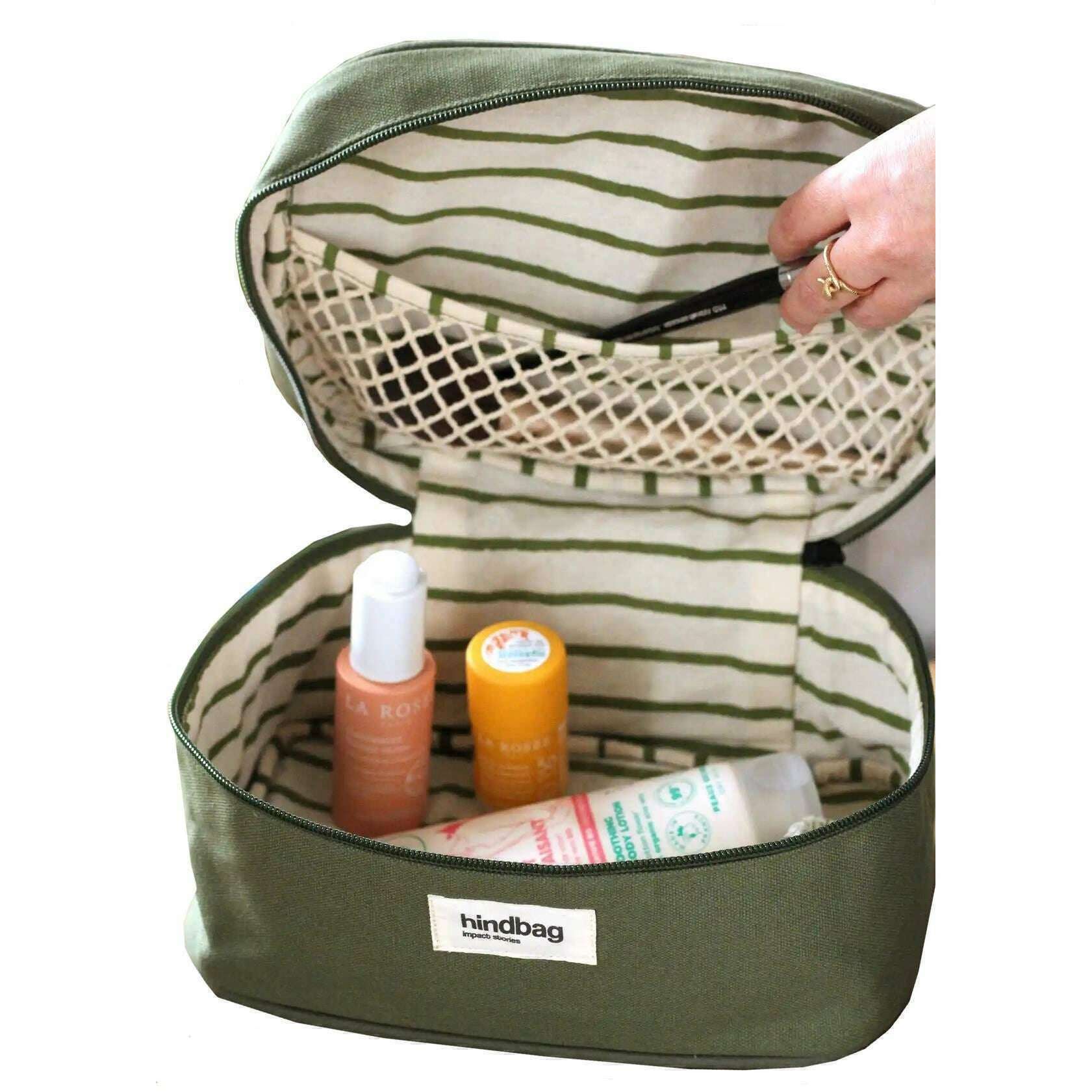 Ta torba unisex Gaspard Vanity została wykonana ze 100% bawełny organicznej, zaprezentowanej w zielonym kolorze i pochodzi z marki Hindbag. Mierzy 13,5 cm (wysokość) x 16 cm (szerokość) x 25 cm (głębokość). Wszystkie torby są wyposażone w opakowanie w klatce tylnej. Torba Vanity Hindbag Gaspard - Olive Green oferuje zarówno podróżnym, jak i codziennym użytkownikom wygodny i stylowy sposób na utrzymanie i dostępność przybory toaletowej. Wewnętrzna siatka jest idealna do starannego układania kosmetyków, kosmetyków i innych przedmiotów osobistych. Dostępne w różnych kolorach, to modne akcesorium stanowi harmonijne połączenie funkcjonalności i estetyki, zaspokajania tych, którzy cenią zarówno styl, jak i praktyczność w swojej podróży.