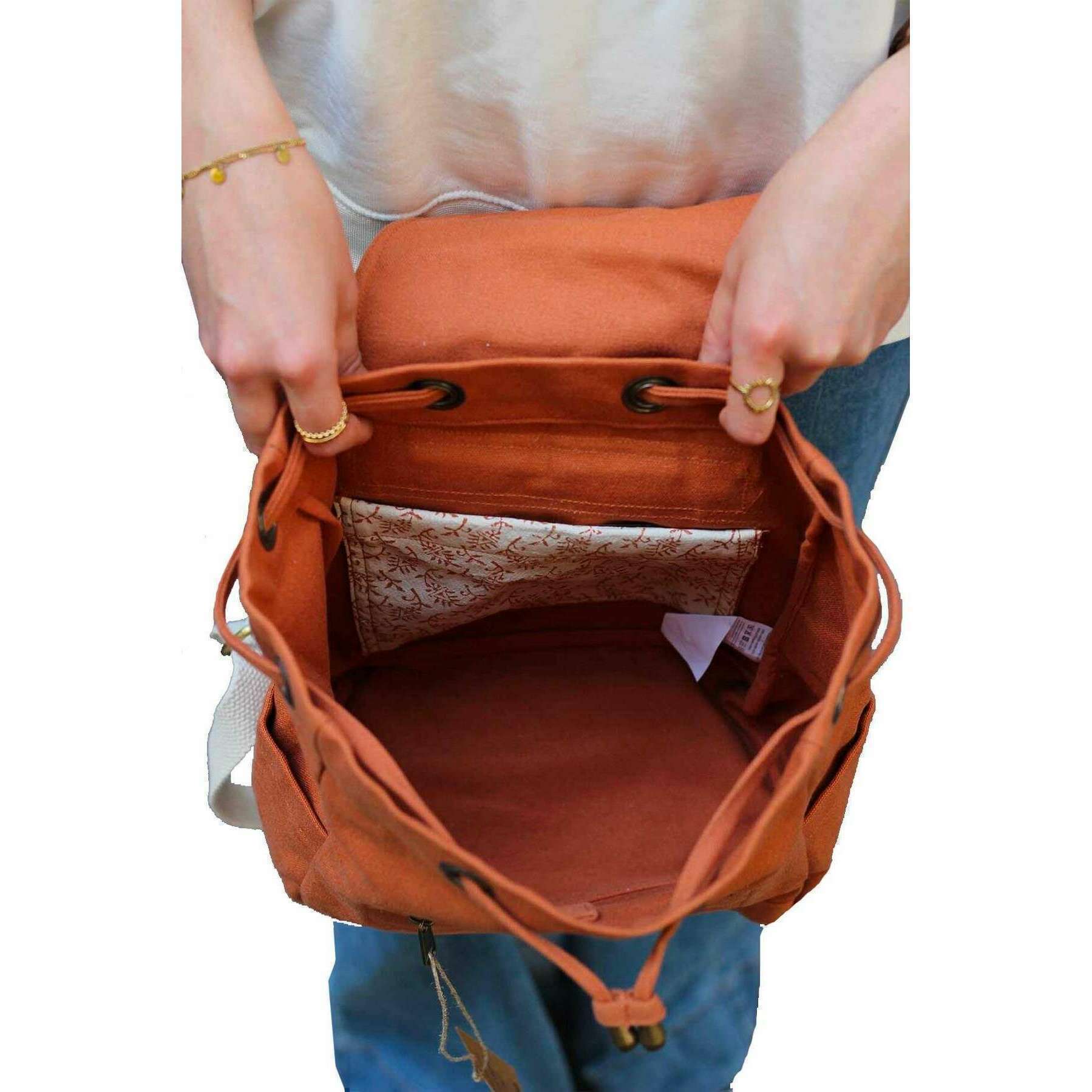 Ten mały mały plecak unisex Mini Eliot został wykonany z 100% bawełny organicznej, prezentowanej w czerwonym kolorze i pochodzi z marki Hindbag. Mierzy 31 cm (wysokość) x 24 cm (szerokość) x 13 cm (głębokość). Wszystkie torby są wyposażone w opakowanie w klatce tylnej. Mały plecak Mini Eliot - Sienna Orange jest odpowiedni dla młodych i starych! Wyposażony w dwie zewnętrzne kieszenie i jedną wewnętrzną kieszeń, możesz wsunąć to, czego potrzebujesz, jednocześnie utrzymując wolne ręce. Ponadczasowy projekt tego mini plecaka łączy urok vintage z nowoczesną funkcjonalnością, co czyni je popularnym wyborem do codziennego użytku.