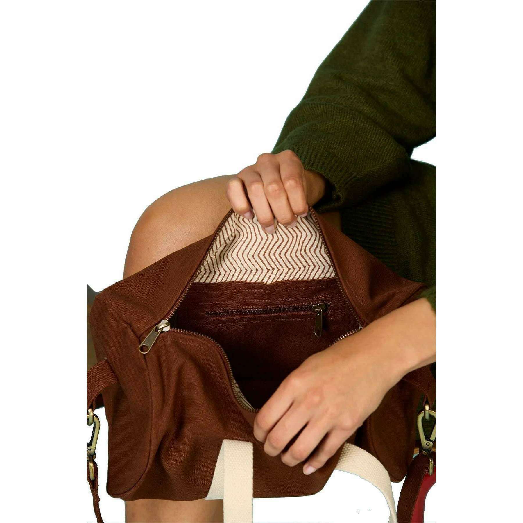 Używając brązowej 100% ekologicznej bawełny, ta mini Simon Small Duffing Bag by Hindbag jest idealna dla mężczyzn lub kobiet i musi mieć. Mierzy 18 cm (wysokość) x 35 cm (szerokość) x 18 cm (głębokość). Wszystkie torby są wyposażone w opakowanie w klatce tylnej. Hindbag Mini Simon Small Duffle Bag - Chocolate Brown to wszechstronny i ekokowy towarzysz podróży zaprojektowany dla osób poszukujących funkcjonalności bez uszczerbku dla stylu. Ta torba Duffel z zewnętrzną kieszenią i regulowanym paskiem na ramię, oferuje dużo miejsca na niezbędne rzeczy przy jednoczesnym zachowaniu eleganckiego profilu, dzięki czemu jest idealny na weekendowe wyjazdy, sesje na siłowni lub codzienne dojazdy.