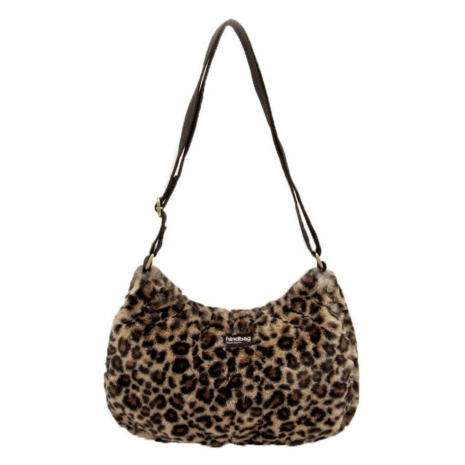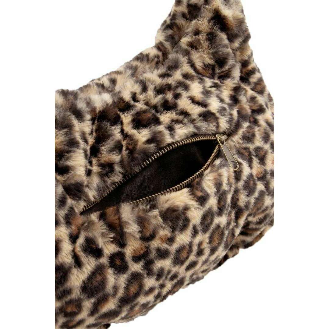 Duża torba na ramię Hindbag Rosa - Faux Fur Leopard Brown
