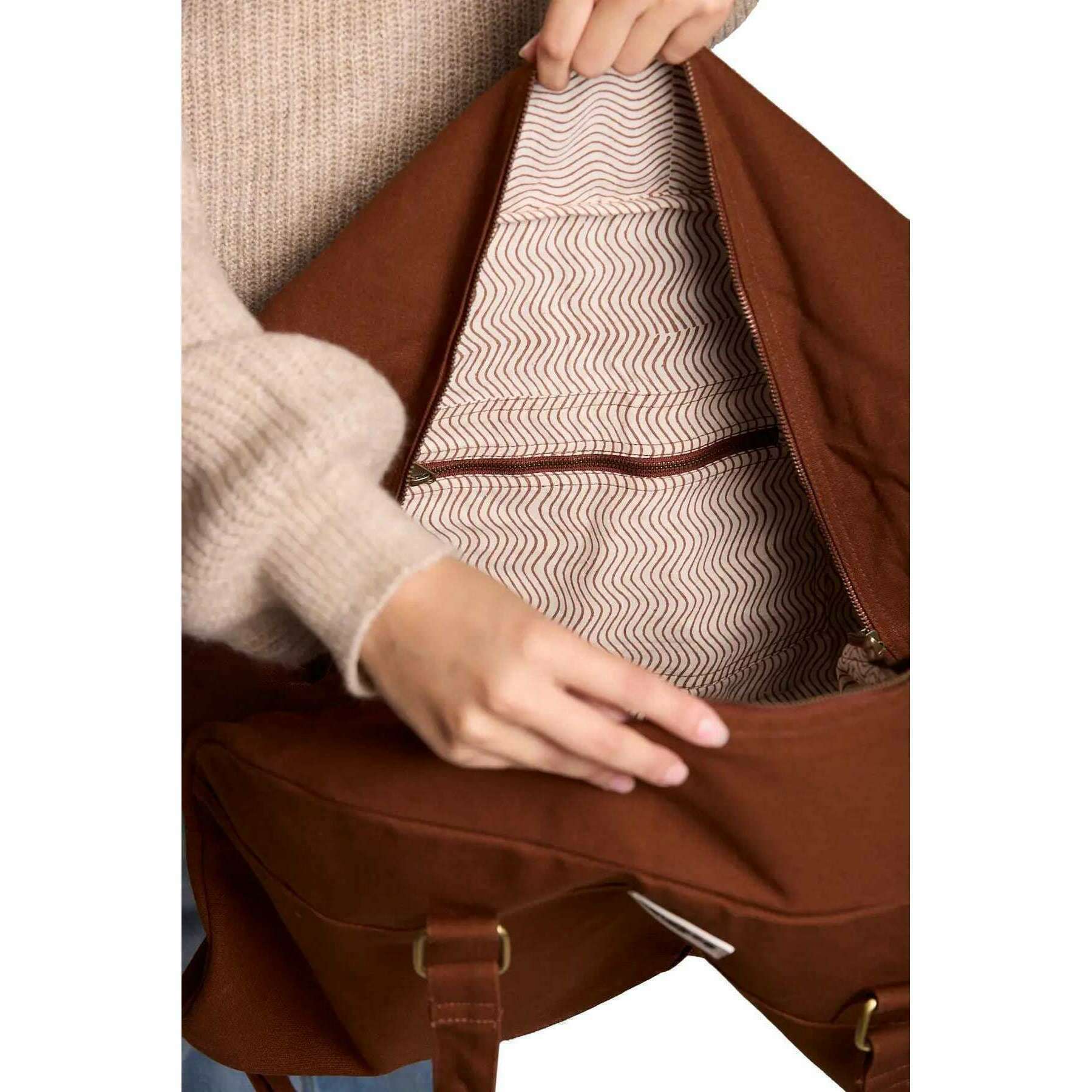 Ta duża torba podróżna Unisex Yves została wykonana ze 100% bawełny organicznej, prezentowanej w brązowym kolorze i pochodzi z marki Hindbag. Mierzy 33 cm (wysokość) x 54 cm (szerokość) x 24 cm (głębokość). Wszystkie torby są wyposażone w opakowanie w klatce tylnej. Duża torba podróżna Hindbag Yves - Chocolate Brown to przestronna i ekologiczna opcja dla podróżników. Wykonana z grubej, certyfikowanej bawełny organicznej, ta torba ma wiele kieszeni organizacji, bezpieczne zamknięcie zamka błyskawicznego i drukowaną wewnętrzną podszewkę, która dodaje odrobiny elegancji. Z uchwytami i dużym regulowanym paskiem ramion można łatwo przenosić ręcznie lub na ramieniu.
