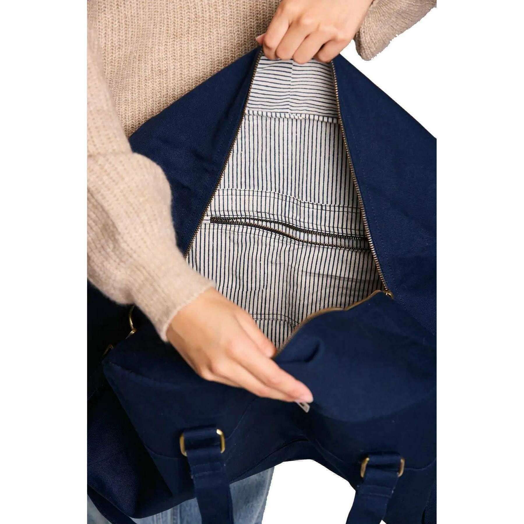 Ta duża torba podróżna dla mężczyzn lub kobiet jest kształtowana przez markę Hindbag w niebieskim kolorze i jest wykonana ze 100% bawełny organicznej. Mierzy 33 cm (wysokość) x 54 cm (szerokość) x 24 cm (głębokość). Wszystkie torby są wyposażone w opakowanie w klatce tylnej. Duża torba podróżna Hindbag Yves - granatowy jest przestronną i ekologiczną opcją dla podróżników. Wykonana z grubej, certyfikowanej bawełny organicznej, ta torba ma wiele kieszeni organizacji, bezpieczne zamknięcie zamka błyskawicznego i drukowaną wewnętrzną podszewkę, która dodaje odrobiny elegancji. Z uchwytami i dużym regulowanym paskiem ramion można łatwo przenosić ręcznie lub na ramieniu.