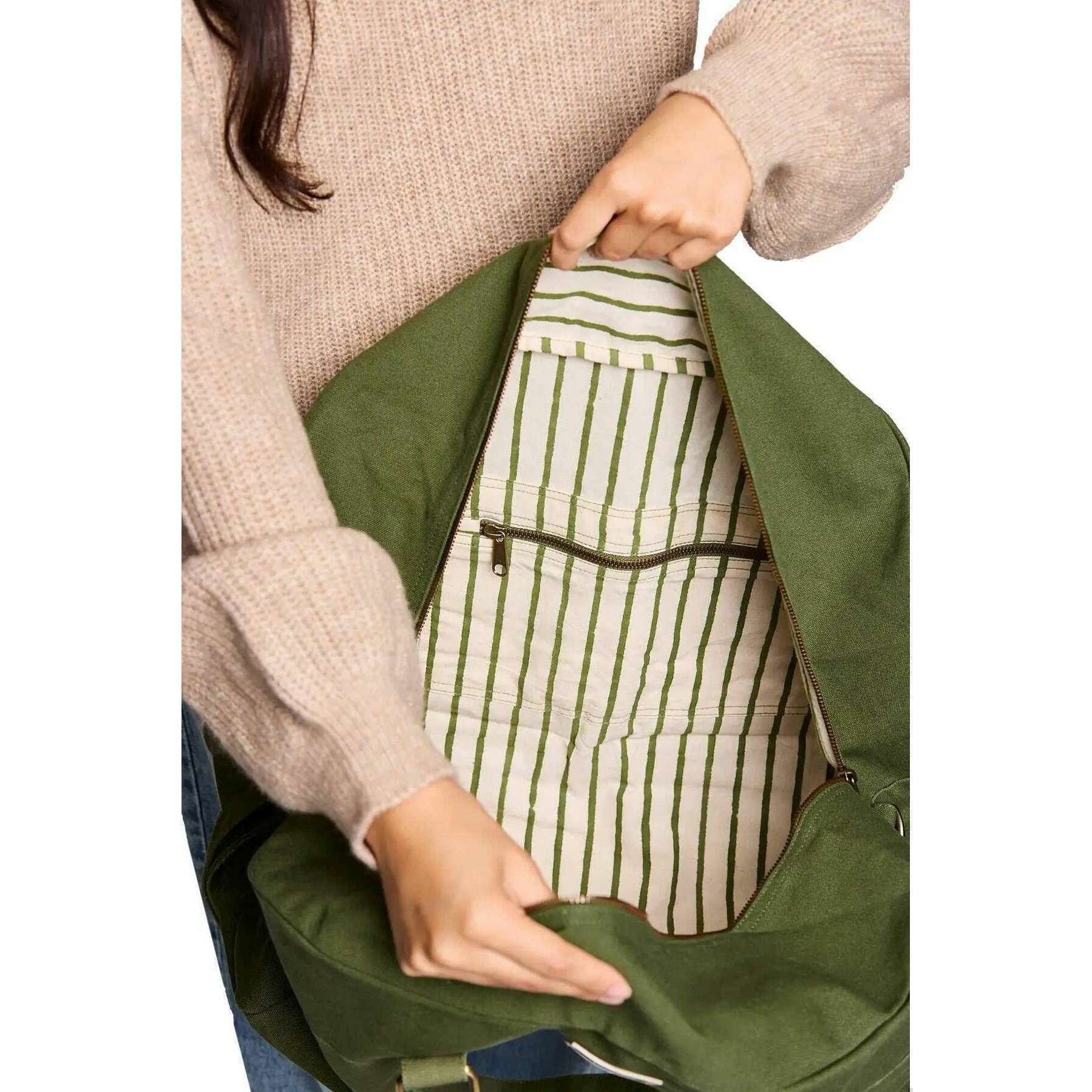 W 100% z bawełny organicznej znajduje się duża torebka podróżna Olive Green Unisex Yves przez projektant Hindbag. Mierzy 33 cm (wysokość) x 54 cm (szerokość) x 24 cm (głębokość). Wszystkie torby są wyposażone w opakowanie w klatce tylnej. Duża torba podróżna Hindbag Yves - Olive Green to przestronna i ekologiczna opcja dla podróżników. Wykonana z grubej, certyfikowanej bawełny organicznej, ta torba ma wiele kieszeni organizacji, bezpieczne zamknięcie zamka błyskawicznego i drukowaną wewnętrzną podszewkę, która dodaje odrobiny elegancji. Z uchwytami i dużym regulowanym paskiem ramion można łatwo przenosić ręcznie lub na ramieniu.