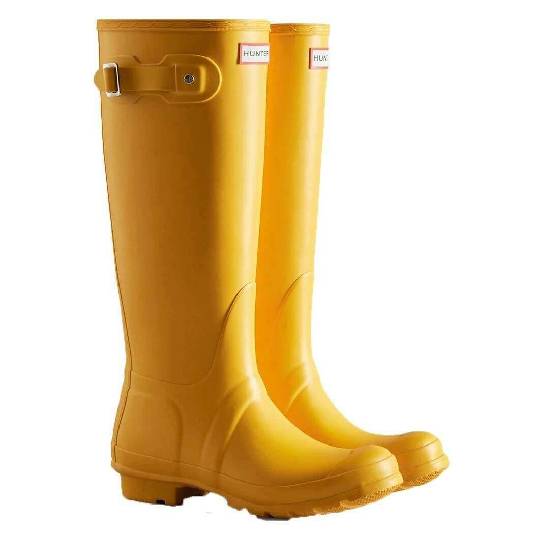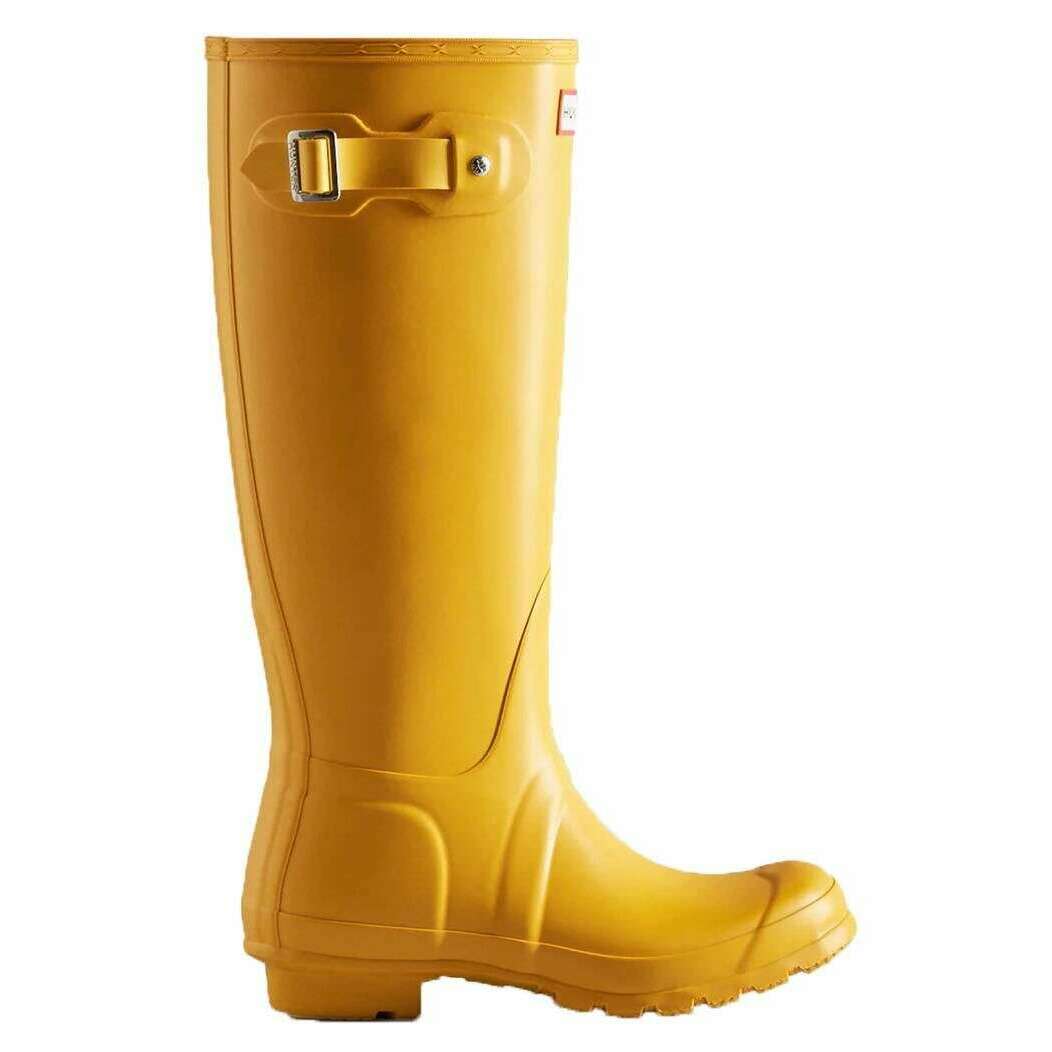 Te oryginalne wysokie kalosze damskie zostały wykonane w 100% z gumy, w żółtym kolorze i pochodzą od marki Hunter. Wszystkie kalosze są dostarczane w komplecie z opakowaniem myśliwskim. Wysokie kalosze Hunter Original – żółte to podstawowy styl kolekcji Hunter, zapewniający niezawodną ochronę od czasu ich wprowadzenia na rynek w 1956 roku. Każda para jest wykonana ręcznie z 28 ręcznie wycinanych części z naturalnego kauczuku, montowanych w ciągu trzech dni na specjalnie wykonanym aluminiowym kopycie i wulkanizowanych w celu zapewnienia doskonałej wodoodporności. Zaprojektowane z matowym wykończeniem, buty mają wzór bieżnika Hunter Original oraz zaktualizowaną podszewkę i wkładkę z poliestru pochodzącego z recyklingu dla większego komfortu. Specjalnie zaprojektowane, aby odpychać wodę i zapobiegać przenikaniu wilgoci, te certyfikowane wegańskie buty są niezbędnym wyborem do noszenia w deszczową pogodę.