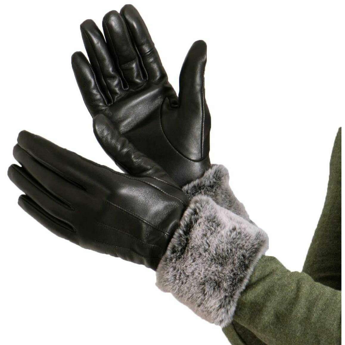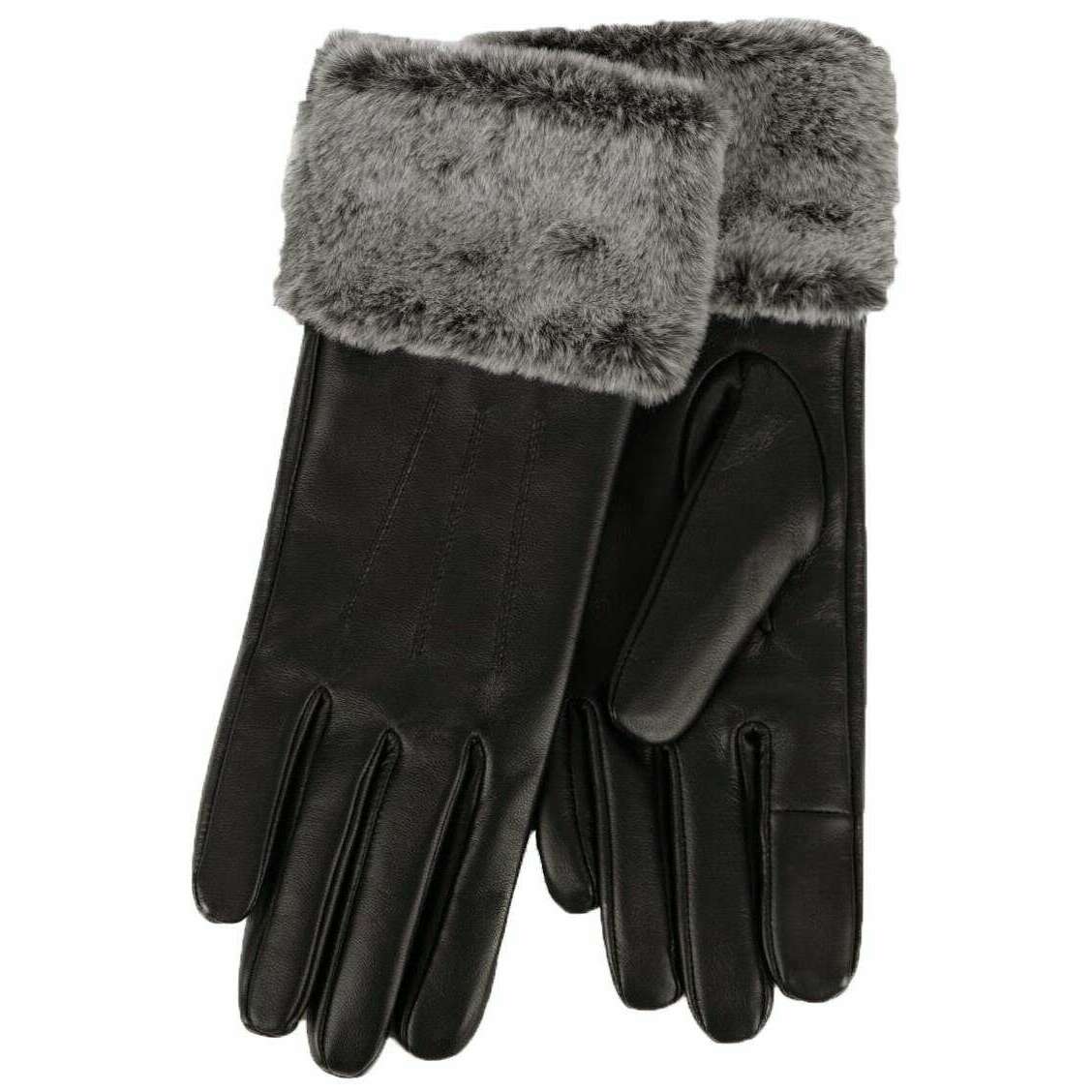 Rękawiczki skórzane Isotoner SmarTouch™ ze sztucznym futerkiem – czarne