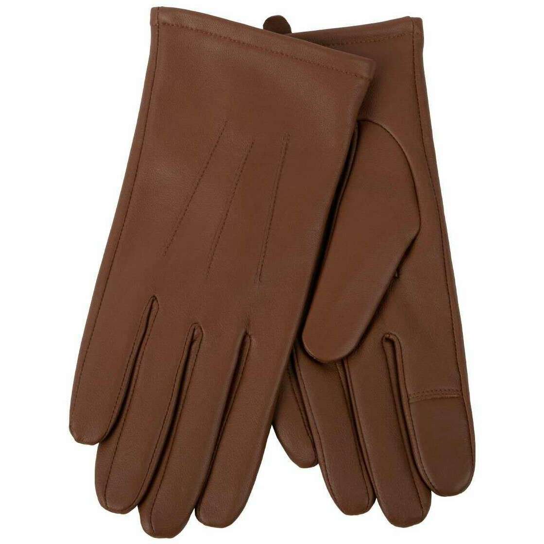 Trzypunktowe skórzane rękawiczki Isotoner SmarTouch™ – brązowe