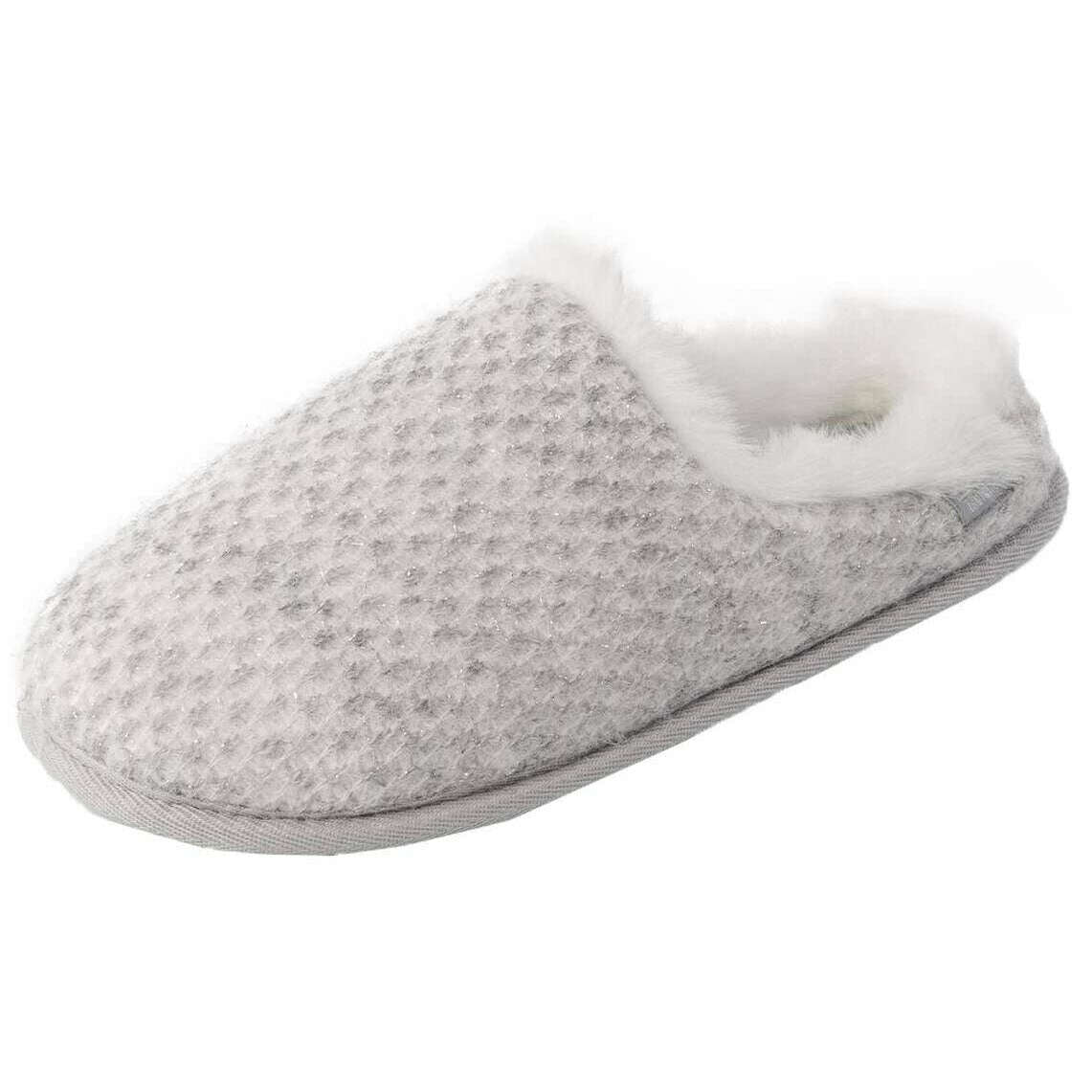 Te damskie kapcie typu mule z błyszczącej dzianiny, zamiecione do tyłu marki Isotoner, są wykonane w 45% z akrylu, w 40% z poliestru i w 15% z wełny i są dostępne w kolorze szarym. Również jasnoszare kapcie mają jednolity wzór. Aby zachować kapcie w dobrym stanie, zaleca się pranie wyłącznie ręczne. Wszystkie kapcie są dostarczane w komplecie z opakowaniem izotonera. Kapcie mułowe Isotoner Sparkle Knit Swept Back Mule - jasnoszare zapewniają wyjątkowy komfort, wsparcie i ciepło! Wyposażone w technologię amortyzacji poduszek i warstwę pięty, dzięki wsparciu pięt, łuków i palców poczujesz się, jakbyś chodził po chmurze. Ten styl mule sprawi, że Twoje stopy będą przyjemne i przyjemne dzięki miękkim, puszystym materiałom i osłonie stopy, a jednocześnie będą oddychać z odkrytymi plecami.