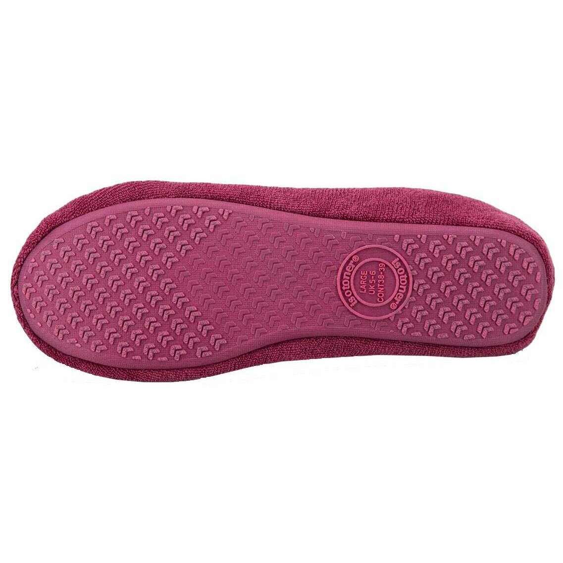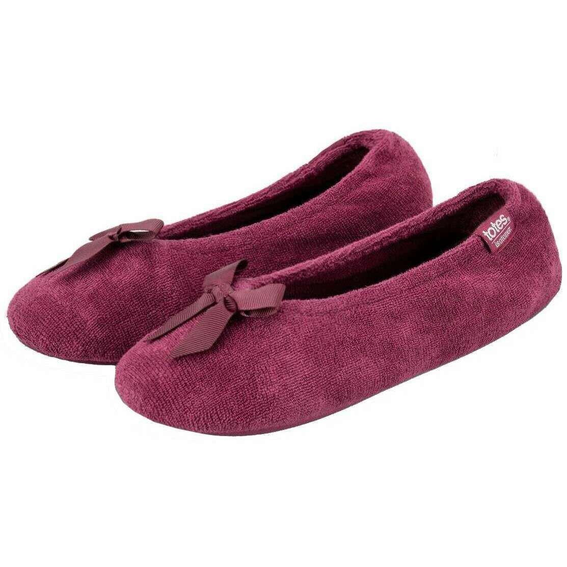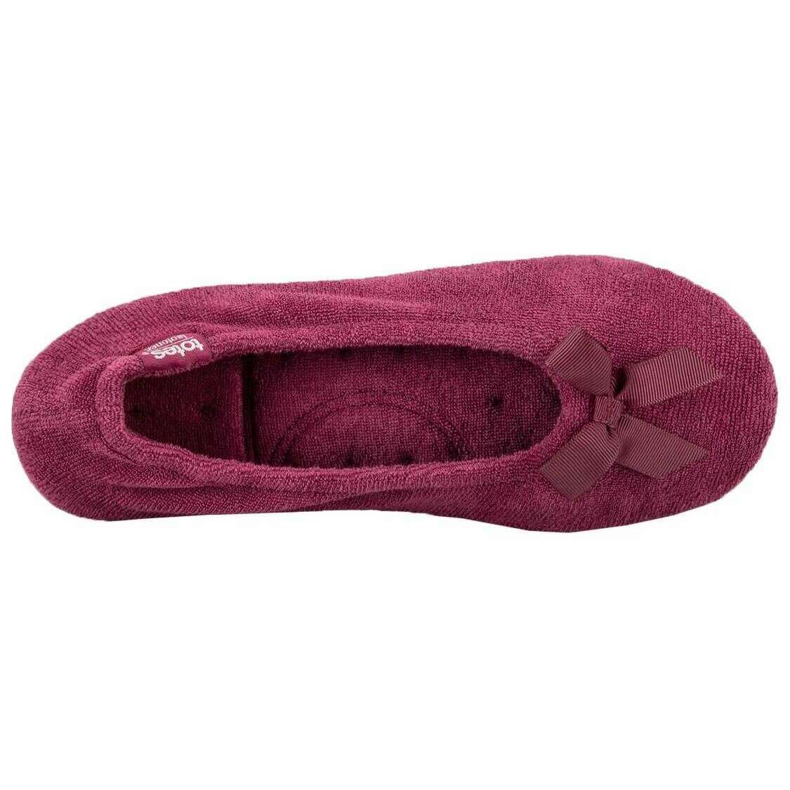 Te damskie baleriny frotowe marki Isotoner są wykonane w 78% z bawełny, w 17% z poliestru i w 5% z elastanu i są dostępne w kolorze bordowym. Również bordowe kapcie mają jednolity wzór. Aby zachować te kapcie w dobrym stanie, zaleca się pranie w pralce w temperaturze 30 stopni. Wszystkie kapcie są dostarczane w komplecie z opakowaniem izotonera. Kapcie Isotoner Terry Ballerina w kolorze bordowym to niezbędny element kolekcji każdej kobiety. Idealne do chodzenia po domu z dodatkowym wsparciem, ciepłem i wygodą dzięki technologii poduszki ze schodkiem z warstwą pianki, trwałą podeszwą i bogatym bawełnianym materiałem. Otwarta konstrukcja zapobiega przegrzaniu stóp, zapewniając uczucie oddychalności, a teksturowana podeszwa zapewnia antypoślizgowy bieżnik. Wykończone dziewczęcą kokardką, aby dopełnić tę cudowną parę.