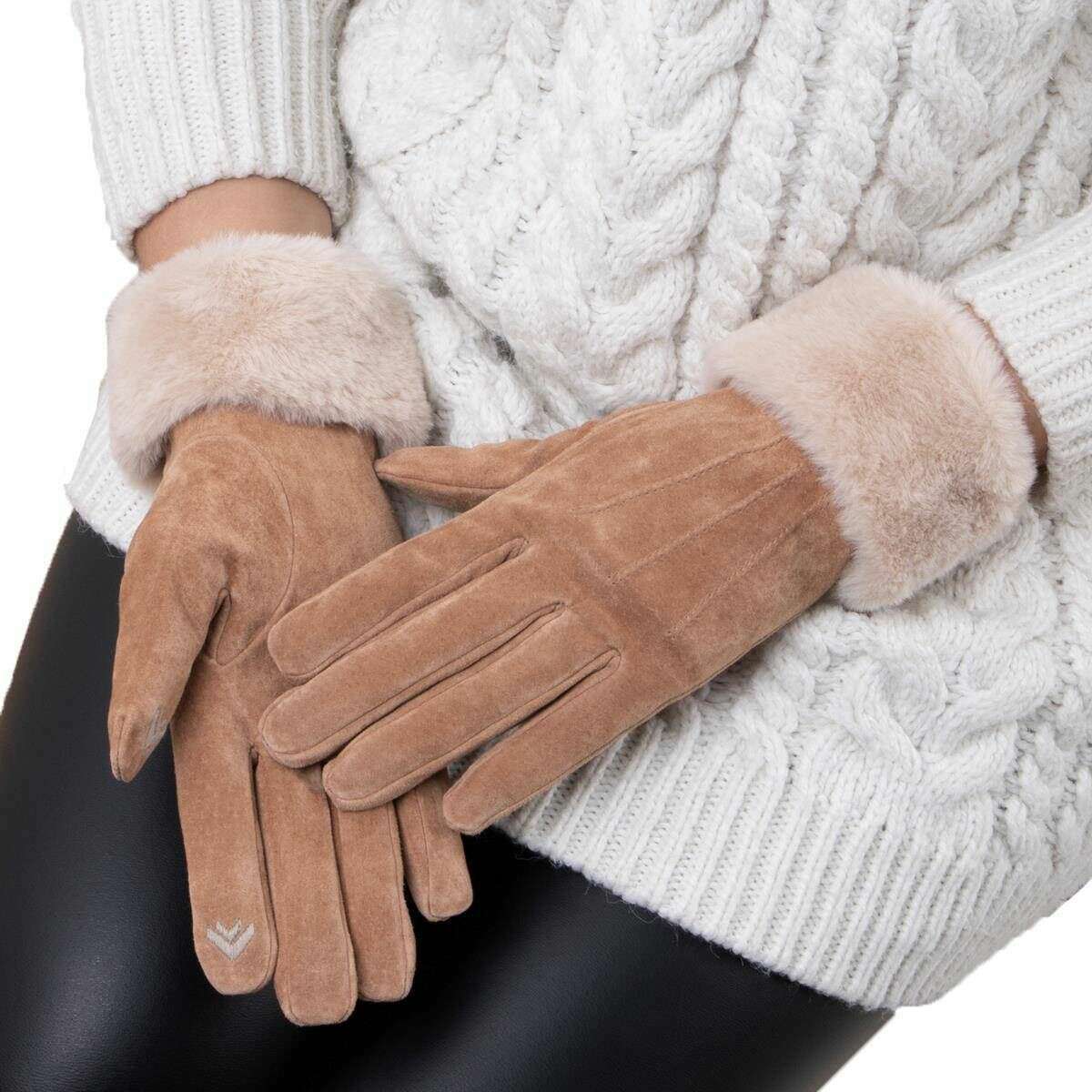 • Technologia SmarTouch na palcach wskazujących i kciukach , Prawdziwy zamsz , Mankiet ze sztucznego futra , Ultra miękka wyściółka