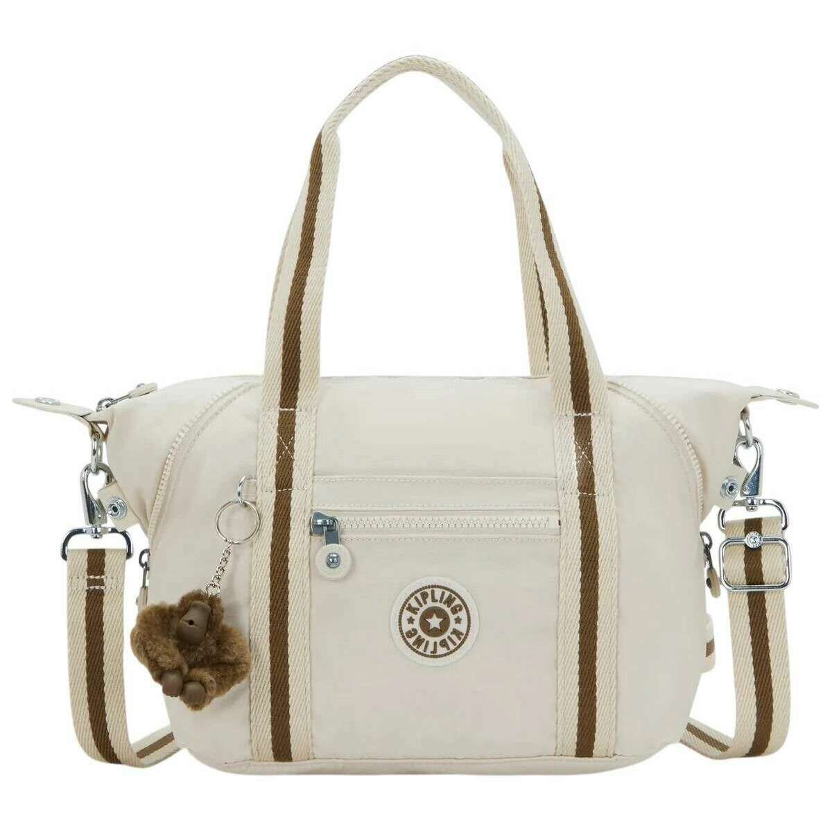 Idealna dla kobiet jest ta mini torebka marki Kipling z miękkiego piasku w kolorze kremowym. Jest ona również wykonana w 60% z poliamidu i w 40% z poliamidu pochodzącego z recyklingu. Wymiary: 20 cm (wysokość) x 39 cm (szerokość) x 18,5 cm (głębokość). Wszystkie torby są dostarczane w komplecie z opakowaniem typu kipling. Mini torba na ramię Kipling Art - Soft Sand Cream to wszechstronny towarzysz na co dzień, zaprojektowany tak, aby dostosować się do potrzeb użytkownika. Dzięki regulowanym narożnikom, które błyskawicznie zmieniają rozmiar i sylwetkę, zapewnia łatwą elastyczność, niezależnie od tego, czy jest używany do codziennych spraw, pracy czy weekendowych wycieczek. Pomimo kompaktowego wyglądu ta lekka torba jest zaskakująco pojemna, ma główną komorę zapinaną na zamek i przemyślanie rozmieszczone kieszenie, które pozwalają uporządkować najważniejsze rzeczy w podróży. Wnętrze zawiera kieszeń zapinaną na zamek oraz dedykowane przegródki na telefon, długopis i portfel, zapewniające łatwy dostęp do mniejszych przedmiotów. Na zewnątrz jedna zapinana na zamek i jedna otwarta przednia kieszeń zapewniają wygodne przechowywanie przedmiotów, których potrzebujesz szybko. Torbę można nosić za pomocą podwójnych uchwytów u góry, aby uzyskać klasyczny wygląd, lub można rozpiąć zamki w rogach, przymocować odpinany i regulowany pasek i założyć ją na ramię lub na ramię bez użycia rąk. Wykończony wodoodporną powłoką, charakterystyczną małpką Kiplinga i kultowym okrągłym logo Kiplinga, Art Mini oferuje zwycięskie połączenie praktyczności, trwałości i zabawnego uroku.