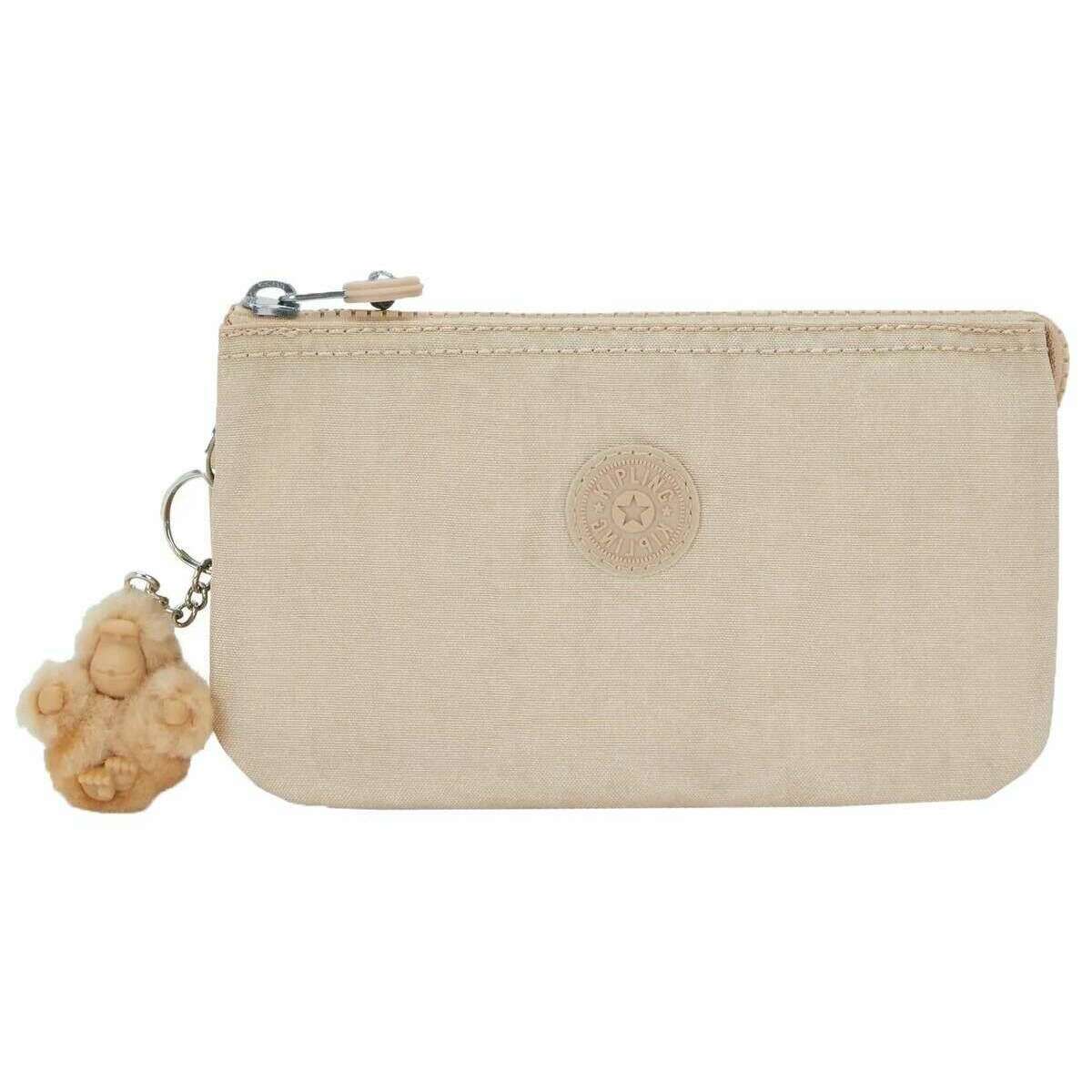 Ta dobrze wykonana, duża torebka damska firmy Kipling jest dostępna w błyszczącym beżowym kolorze i jest wykonana w 56% z poliamidu pochodzącego z recyklingu i w 44% z poliamidu. Wymiary: 11 cm (wysokość) x 18,5 cm (szerokość) x 4 cm (głębokość). Wszystkie torby są dostarczane w komplecie z opakowaniem typu kipling. Duża saszetka Kipling Creativity - Sparkled Beige to kompaktowa, ale bardzo praktyczna torba na akcesoria zaprojektowana, aby pomóc w uporządkowaniu mniejszych przedmiotów. Zapinana na zamek błyskawiczny u góry, aby zabezpieczyć zawartość, wewnętrzne przegródki i kieszeń zapinana na zamek są przydatne do oddzielania małych przedmiotów. Dzięki urokowi małpy, przemyślanemu układowi i lekkiej konstrukcji, ta torba jest idealna dla każdego, kto ceni sobie strukturę i wygodę bez objętości.