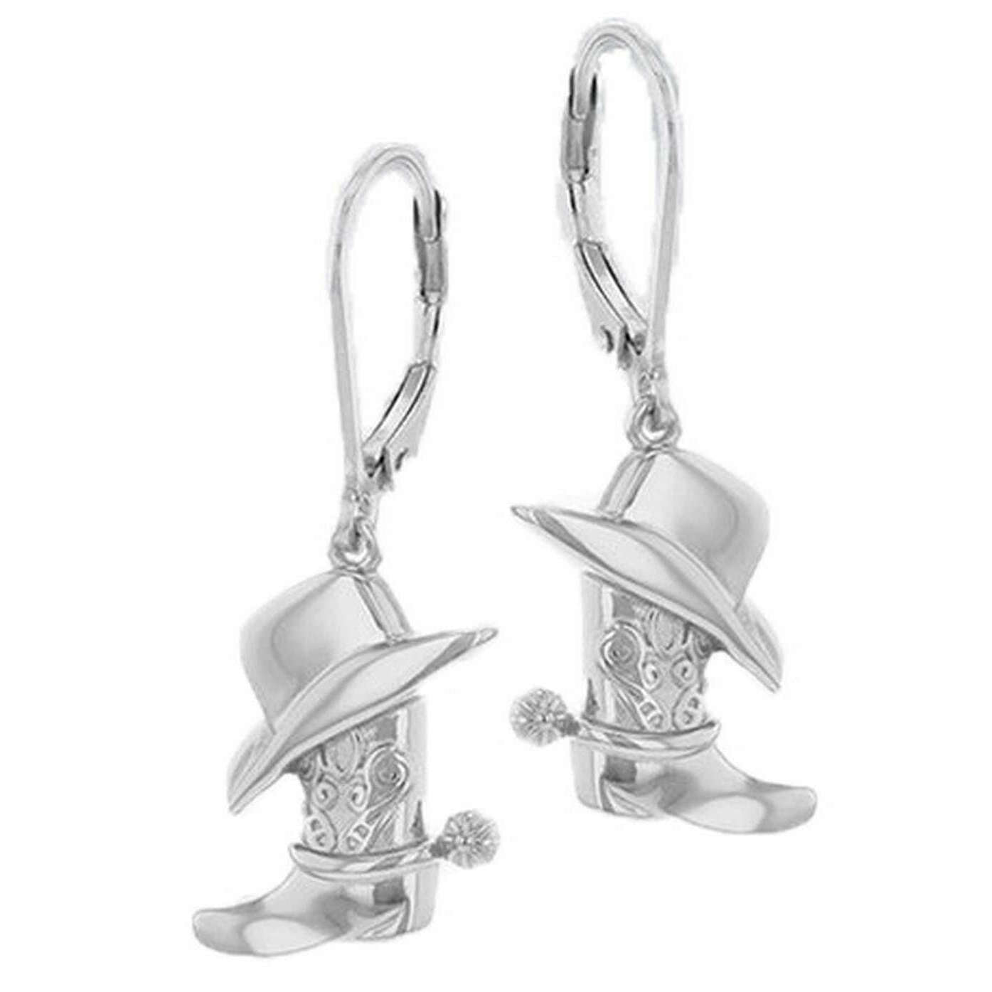 KJ Beckett Kolczyki z kowbojskim kapeluszem i dźwignią buta - srebrne