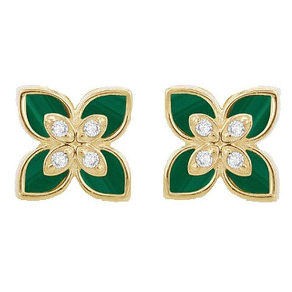 KJ Beckett Kolczyki z malachitowym kwiatem - żółte złoto/zielone