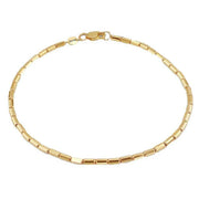 Projektant KJ Beckett przedstawił Ci tę damską bransoletkę z 9-karatowego żółtego złota w odcieniach żółtego złota. Wszystkie bransoletki są dostarczane w komplecie z opakowaniem. Bransoletka KJ Beckett Mini Diamond Cut - żółte złoto to subtelna, ale efektowna bransoletka zawierająca serię mini diamentowych sztabek, które odbijają światło przy każdym ruchu. Ta lekka i wygodna na nadgarstku bransoletka ucieleśnia dyskretną elegancję, dodając jednocześnie odrobinę współczesnego stylu każdemu strojowi. Ten starannie wykonany egzemplarz ma delikatny połysk, dzięki czemu można go nosić na co dzień i na specjalne okazje.