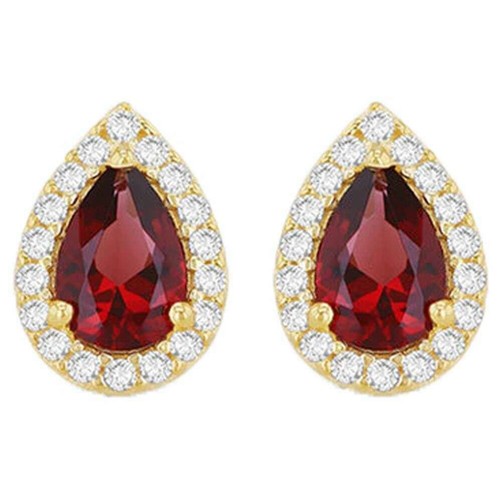 KJ Beckett Kolczyki Halo w kształcie gruszki - żółte złoto/czerwone