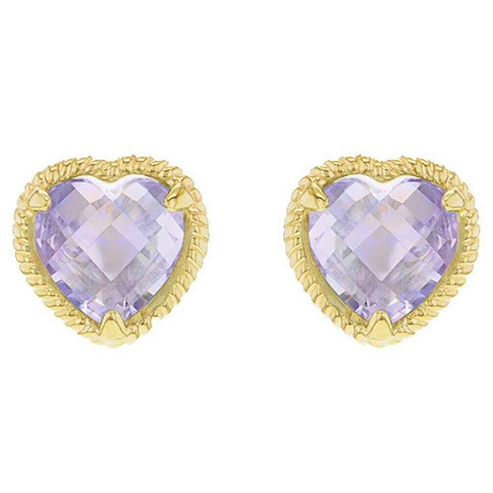 Kolczyki KJ Beckett Twisted Heart z ametystem - żółte złoto/fiolet