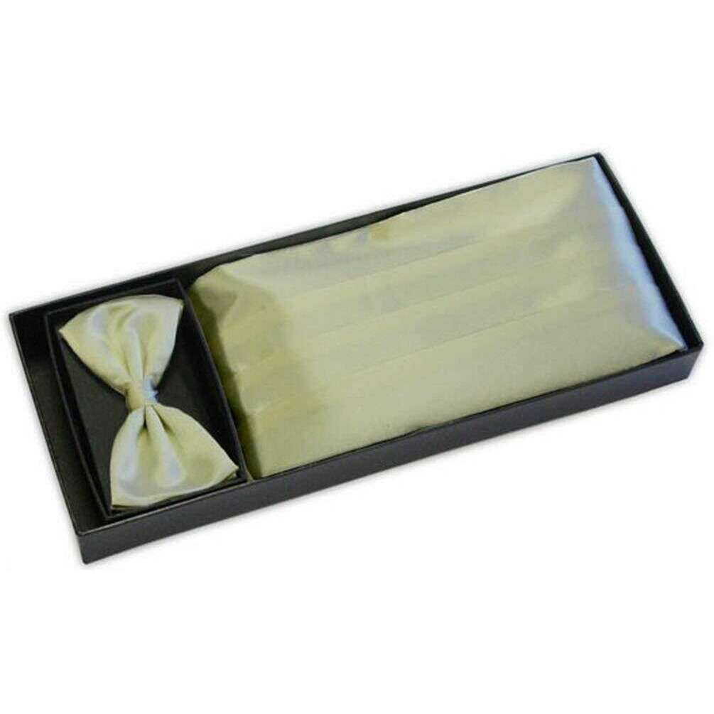 Ten męski zestaw pasa i muszki został wyprodukowany przez markę Knightsbridge Neckwear w białym kolorze i jest wykonany w 100% z poliestru. Również mucha w kolorze kości słoniowej ma gładki wzór. Aby utrzymać muchę w dobrym stanie, zaleca się czyszczenie chemiczne. Wszystkie muszki są dostarczane w komplecie z pudełkiem prezentacyjnym na szyję Knightsbridge. Zestaw Knightsbridge Cummerbund i muszki na szyję – kość słoniowa posiada regulowany pasek na szyję, zapewniający idealne dopasowanie. Ten piękny zestaw z białą muszką i pasem jest idealny na każdą fantazyjną okazję dzięki wyjątkowemu materiałowi. Stworzony tak, aby przyciągał wzrok i przyciągał uwagę otaczających Cię osób.