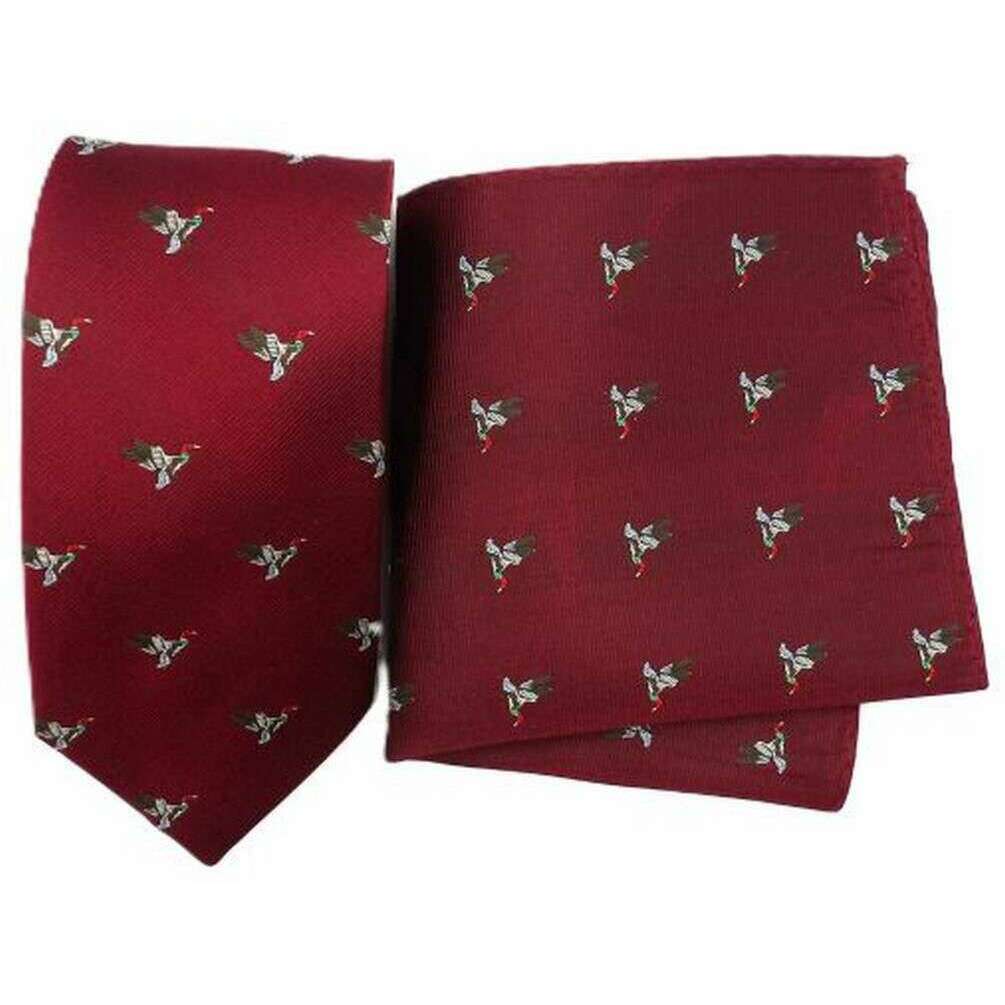 Zestaw krawatów i poszetek z kaczego jedwabiu na szyję Knightsbridge – burgund