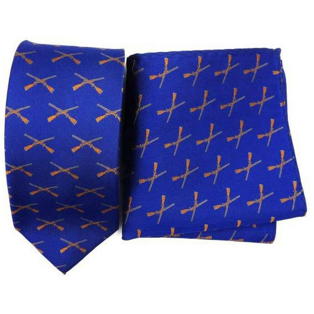 Zestaw Knightsbridge Tkany jedwabny krawat i poszetki w kształcie pistoletu – królewski błękit