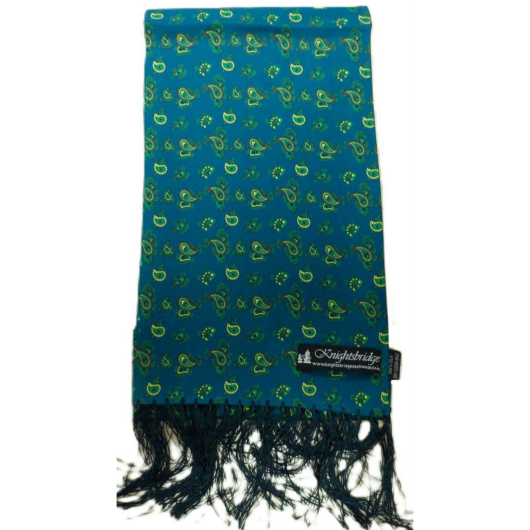 Jedwabny szal lotnik Knightsbridge Paisley - zielony/żółty