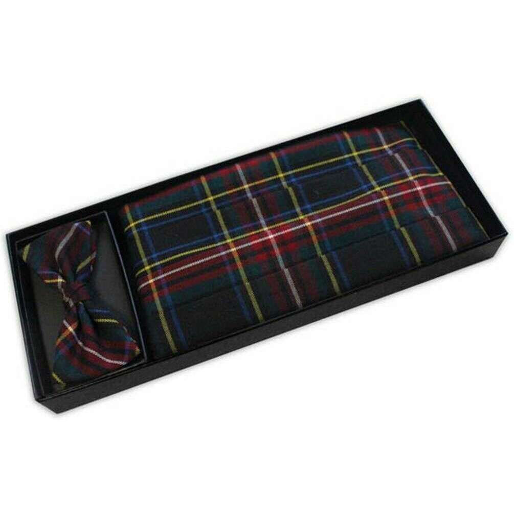 Zestaw Knightsbridge Neckwear w szkocką kratę i muszki – niebieski/zielony