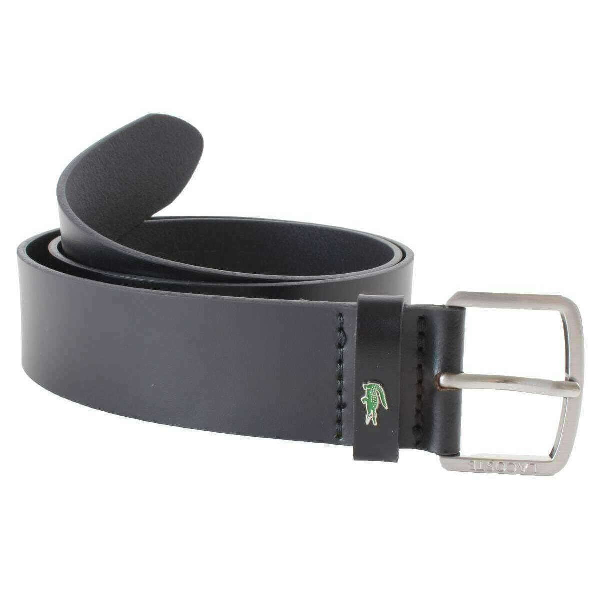 Lacoste gładki skórzany pasek - czarny