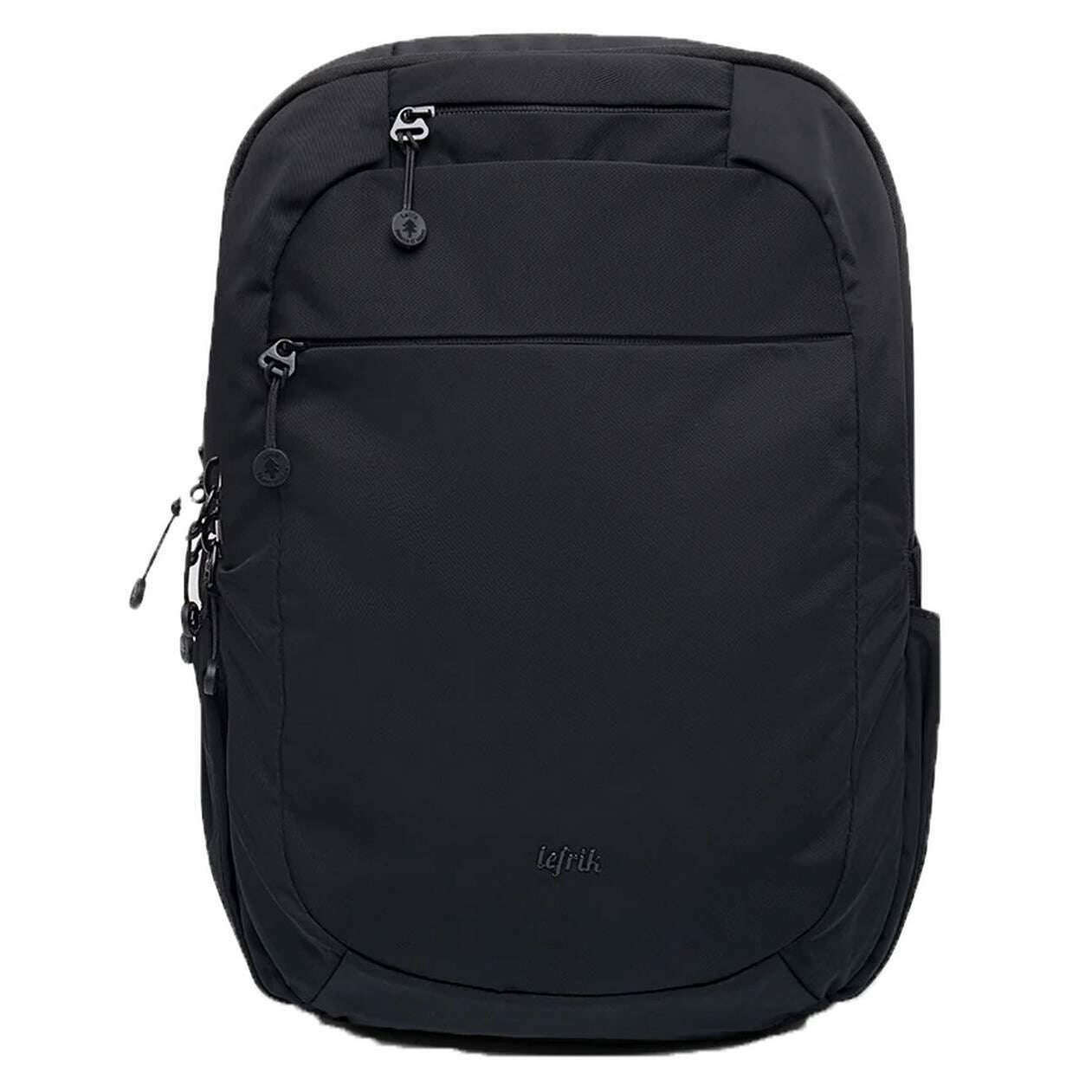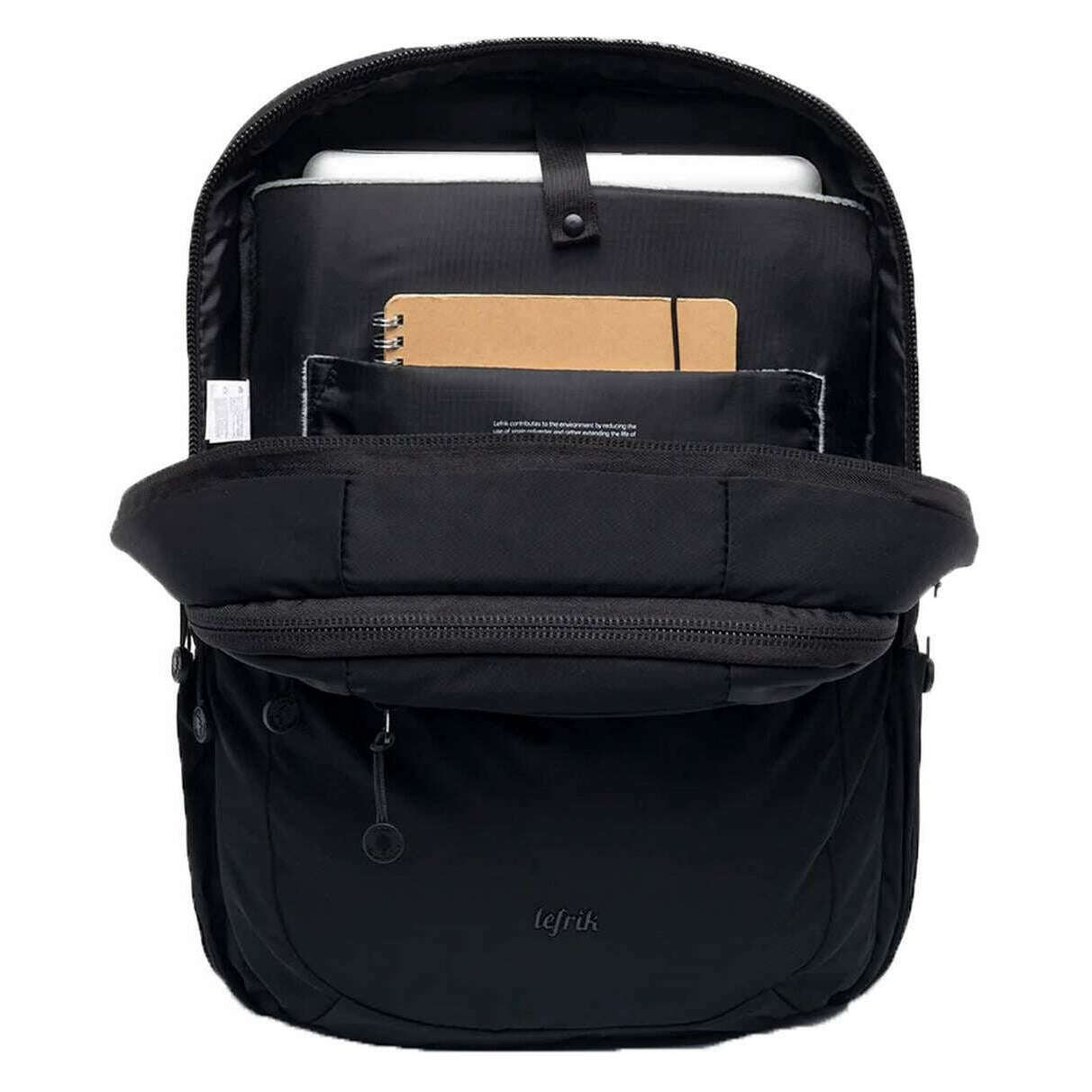 Projektant Lefrik przedstawił Ci tę uniseksową, w 100% ultralekką torbę z materiału w czarnych odcieniach. Wymiary: 40 cm (wysokość) x 25 cm (szerokość) x 12 cm (głębokość). Wszystkie torby są dostarczane w komplecie z opakowaniem lefrik. Plecak Lefrik 101 – czarny to elegancki, zrównoważony i praktyczny wybór na codzienne dojazdy do pracy i podróże służbowe. Ten plecak, wykonany z plastikowych butelek pochodzących z recyklingu, ma główną komorę z wyściełanym rękawem, w której zmieści się laptop o przekątnej do 15,6 cala, tablety i przedmioty codziennego użytku. Aby zapewnić sprawną organizację, torba ta posiada dwie szybko dostępne kieszenie zapinane na zamek, jedną na górze i jedną z przodu. Wyściełany tył i wygodne uchwyty sprawiają, że plecak można przymocować do rączki walizki na kółkach, aby zapewnić mu bezpieczeństwo podczas podróży.