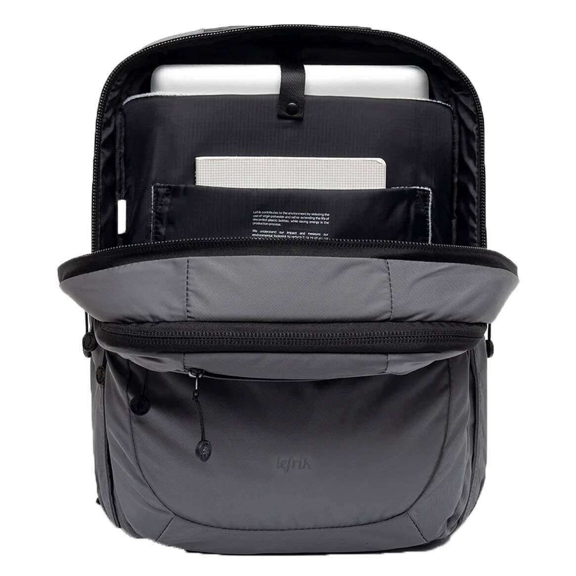 Wykonany z szarego, w 100% ultralekkiego materiału, ten plecak 101 firmy Lefrik jest idealny dla mężczyzn i kobiet i jest koniecznością. Wymiary: 40 cm (wysokość) x 25 cm (szerokość) x 12 cm (głębokość). Wszystkie torby są dostarczane w komplecie z opakowaniem lefrik. Plecak Lefrik 101 – szary to elegancki, zrównoważony i praktyczny wybór na codzienne dojazdy do pracy i podróże służbowe. Ten plecak, wykonany z plastikowych butelek pochodzących z recyklingu, ma główną komorę z wyściełanym rękawem, w której zmieści się laptop o przekątnej do 15,6 cala, tablety i przedmioty codziennego użytku. Aby zapewnić sprawną organizację, torba ta posiada dwie szybko dostępne kieszenie zapinane na zamek, jedną na górze i jedną z przodu. Wyściełany tył i wygodne uchwyty sprawiają, że plecak można przymocować do rączki walizki na kółkach, aby zapewnić mu bezpieczeństwo podczas podróży.